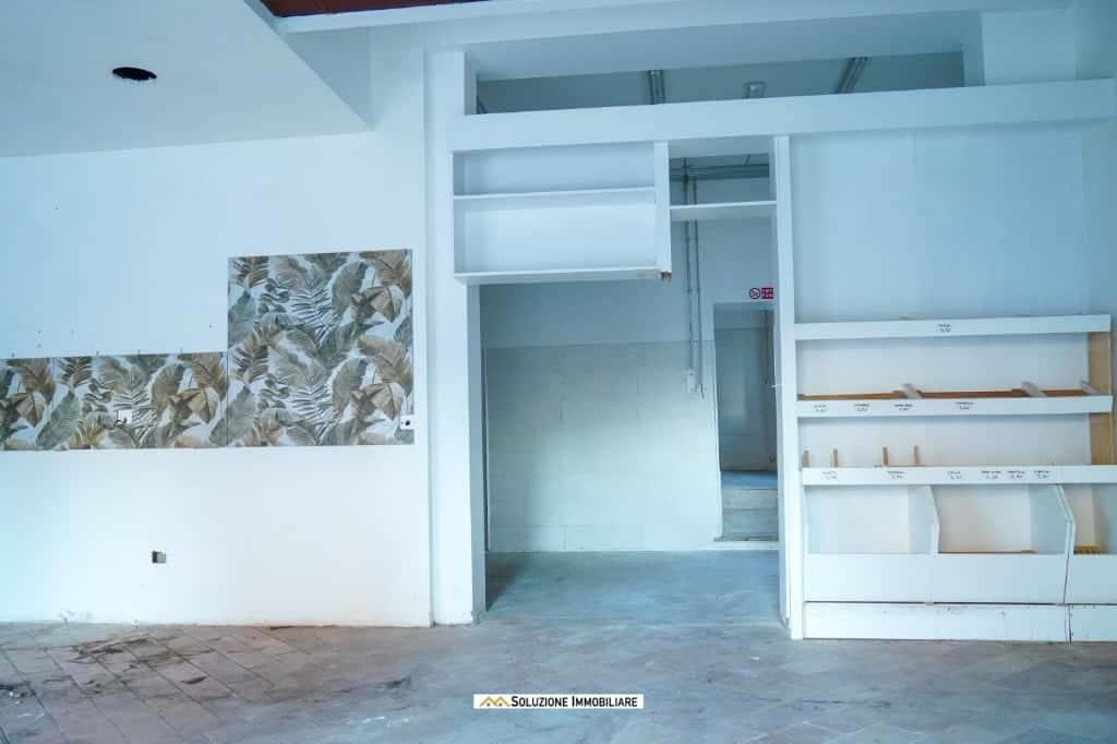 Il locale ha 3 vetrine fronte strada, attualmente è così suddiviso: 2 ampi locali, magazzino, 3 servizi, ripostiglio e ingresso secondario.