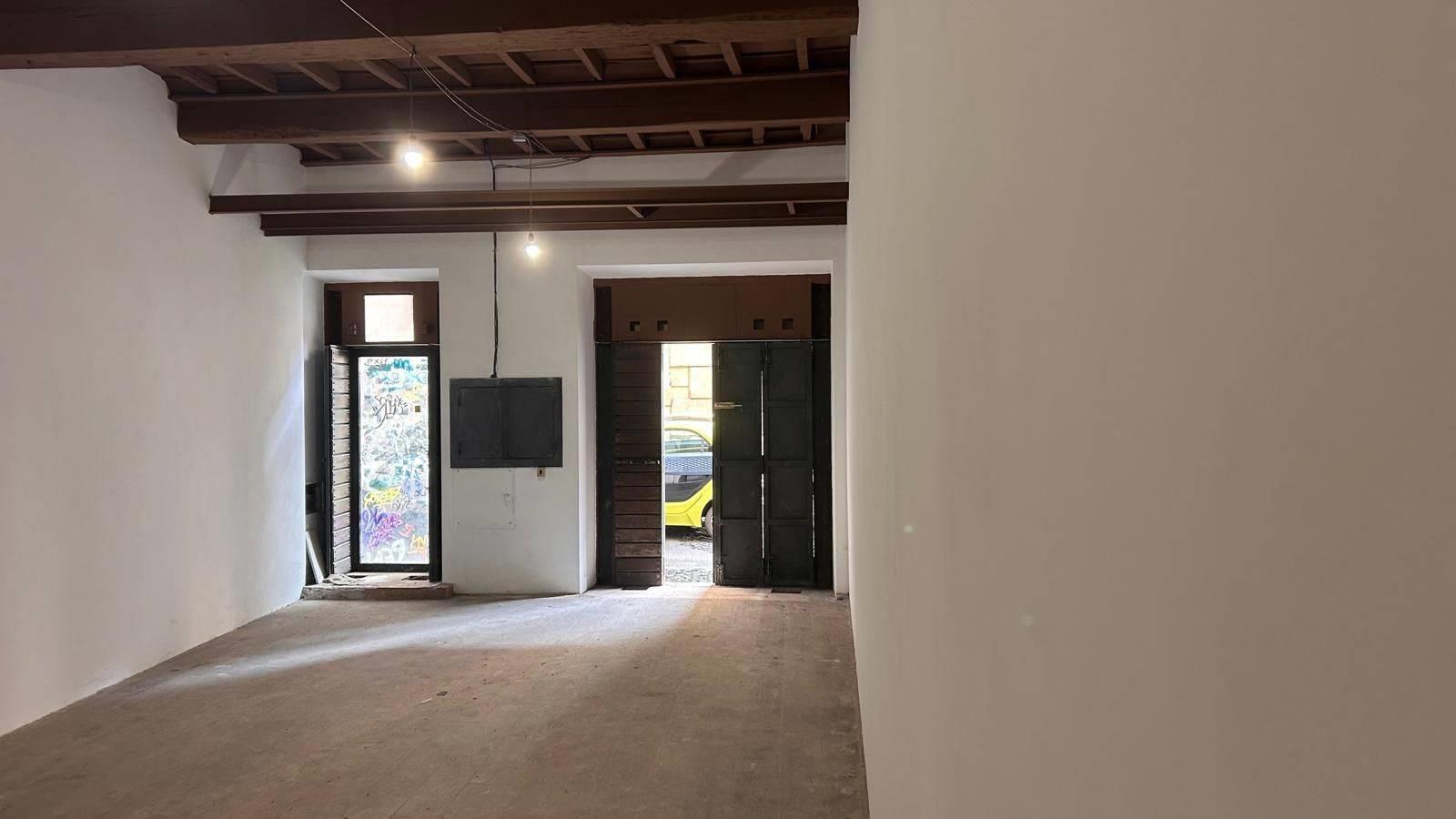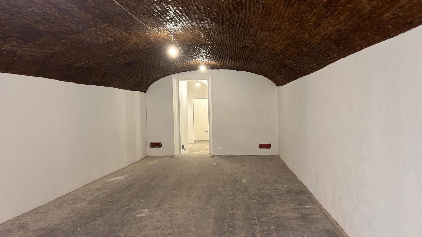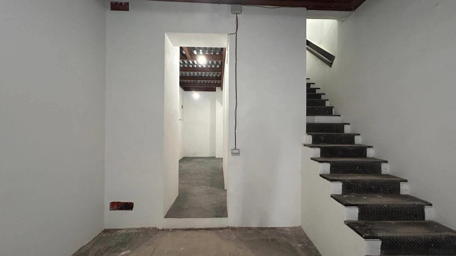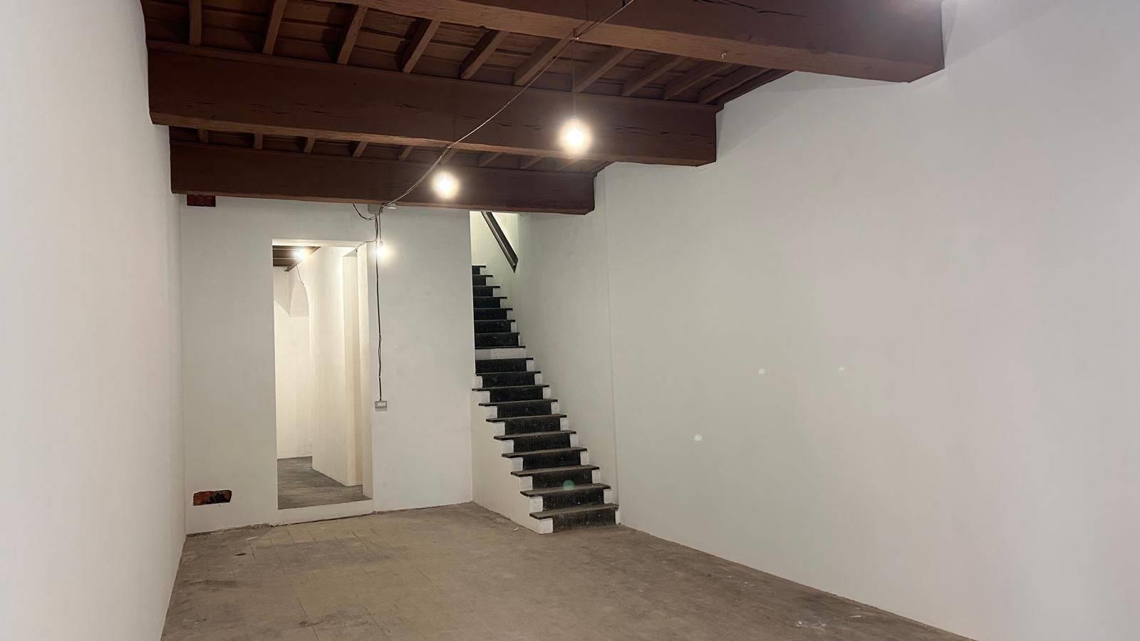 AL PIANO TERRA: Open-space di mq 45 con soffitto rinforzato e travi in legno a vista e un retronegozio di mq 17.
