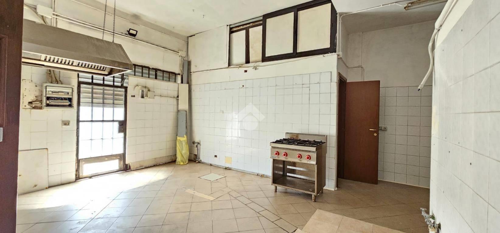 - un locale commerciale di 140 mq con canna fumaria, cucina, due sale, doppio servizio (uno per clienti e uno per lo staff) e doppia vetrina, attualmente libero ma locabile ad euro 1.200,00/mese