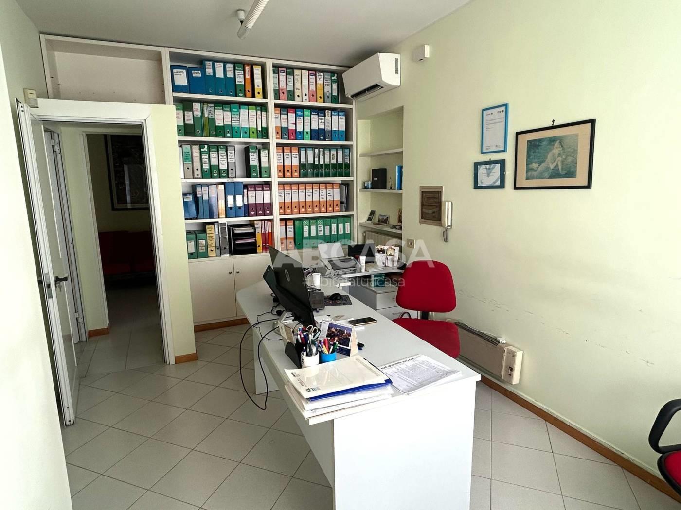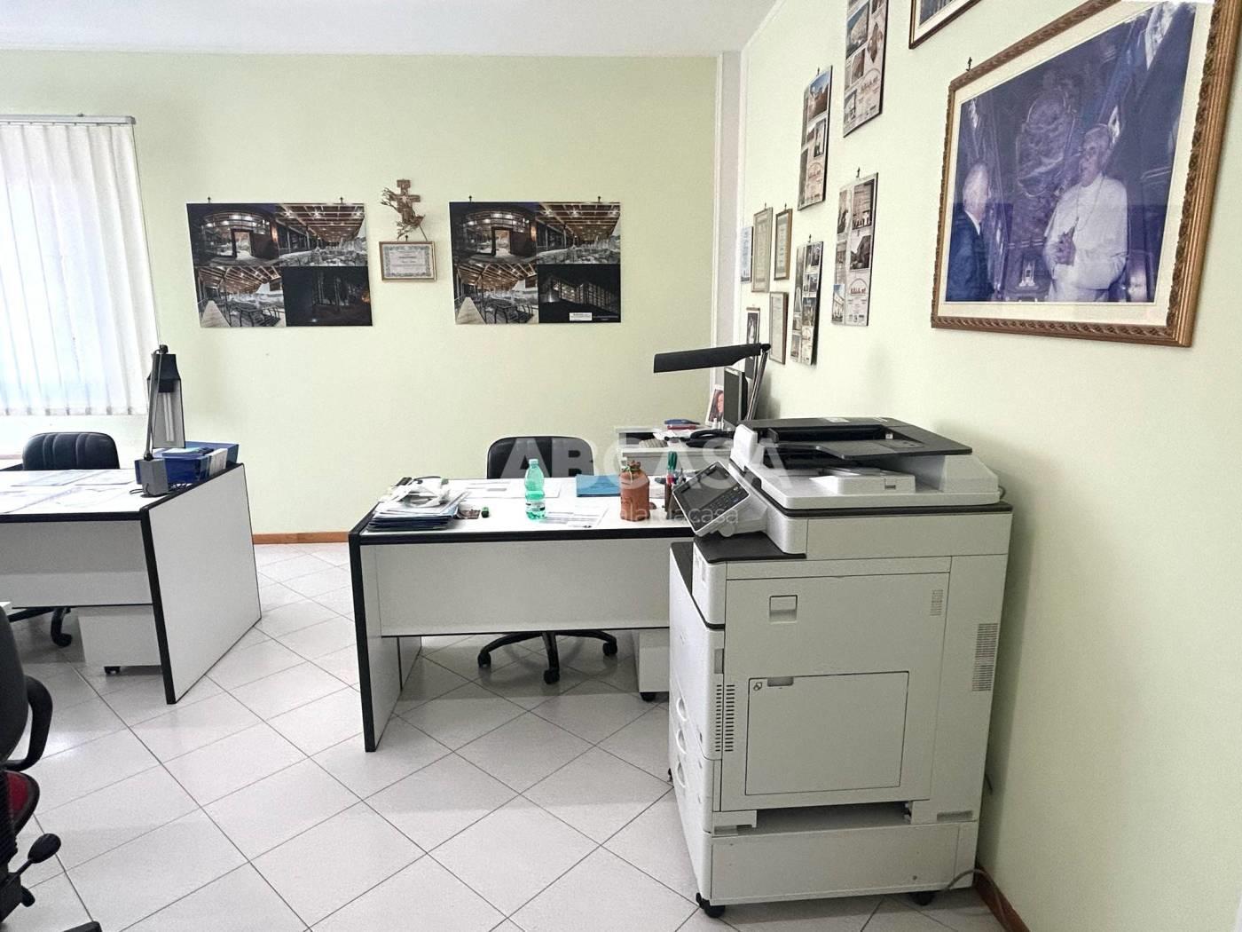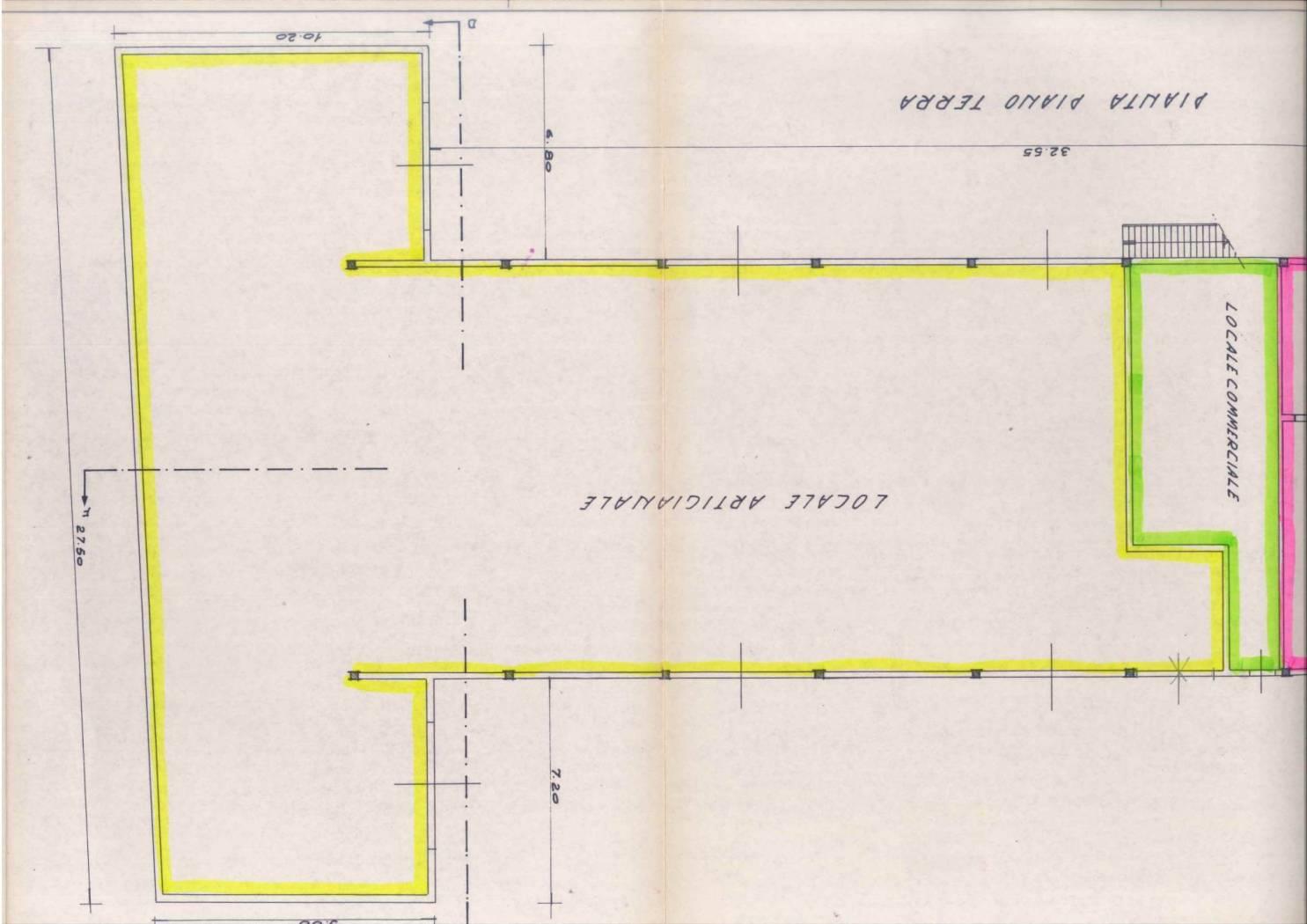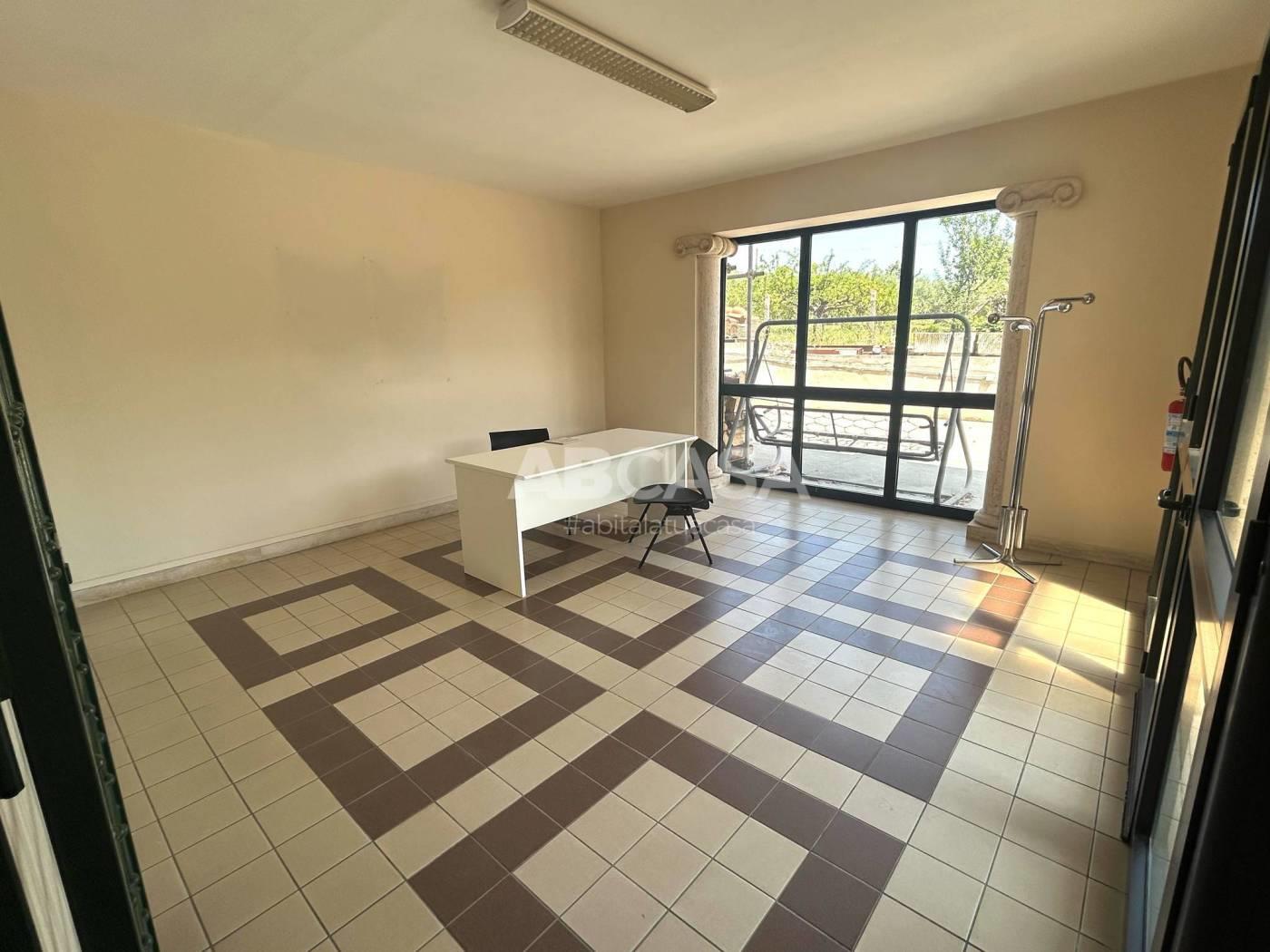 Attualmente troviamo un ampio ingresso, due uffici, un bagno e un capannone al piano terra, con un altezza minima 5 mt, mentre la parte più alta è di 7 mt;