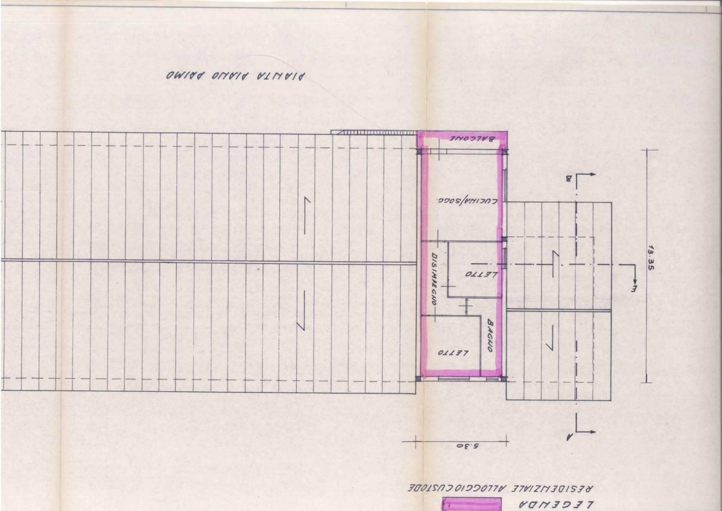 Al primo piano, salendo da una scala esterna, troviamo un comodo appartamento di 70 mq ad uso abitativo, composto da un soggiorno con angolo cottura con uscita su un balcone, due camere da letto e un bagno.