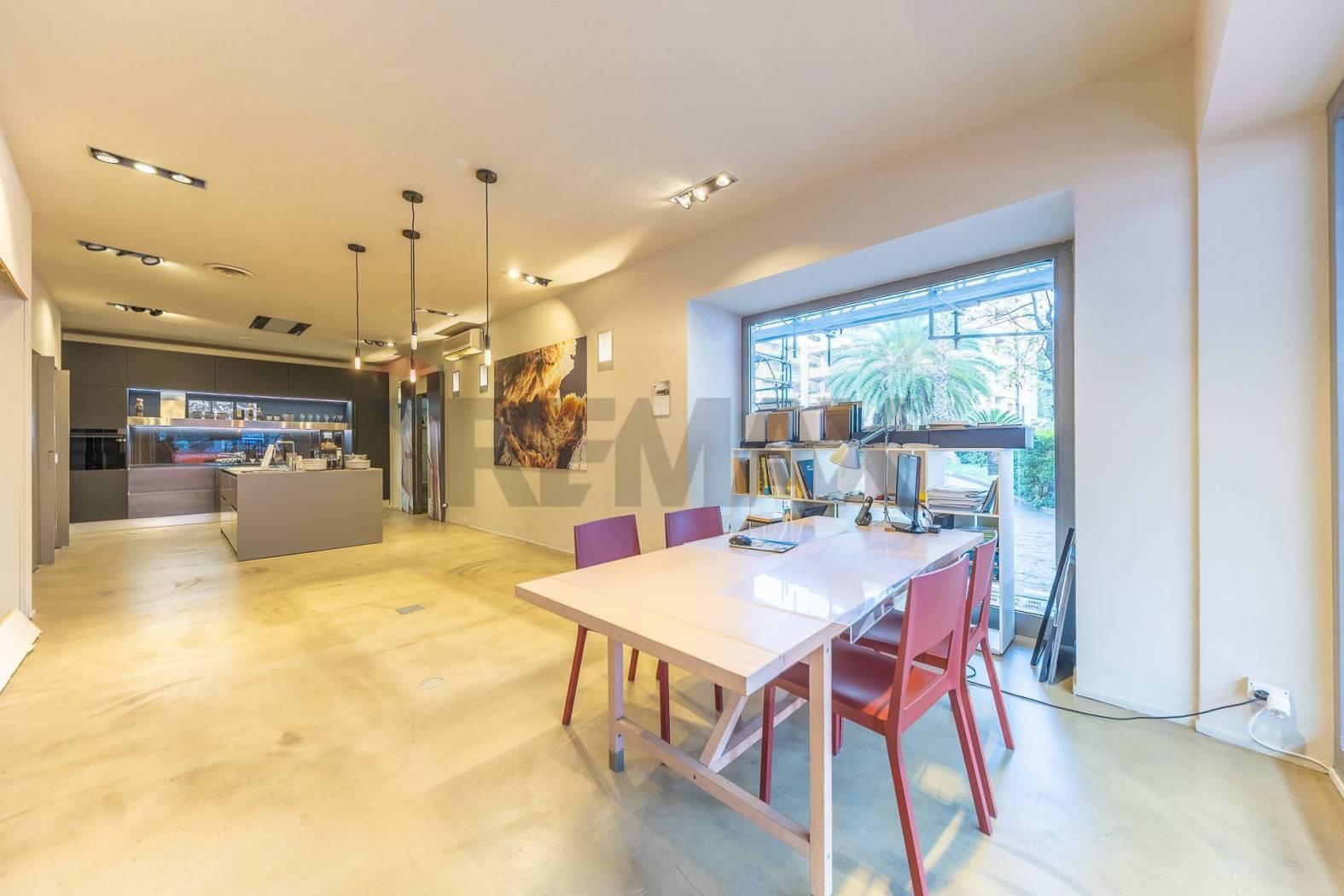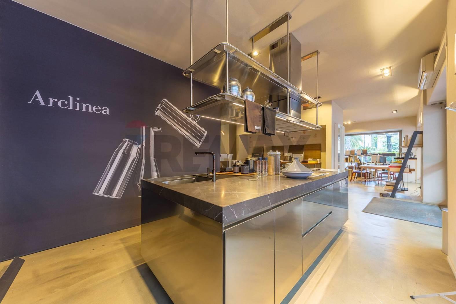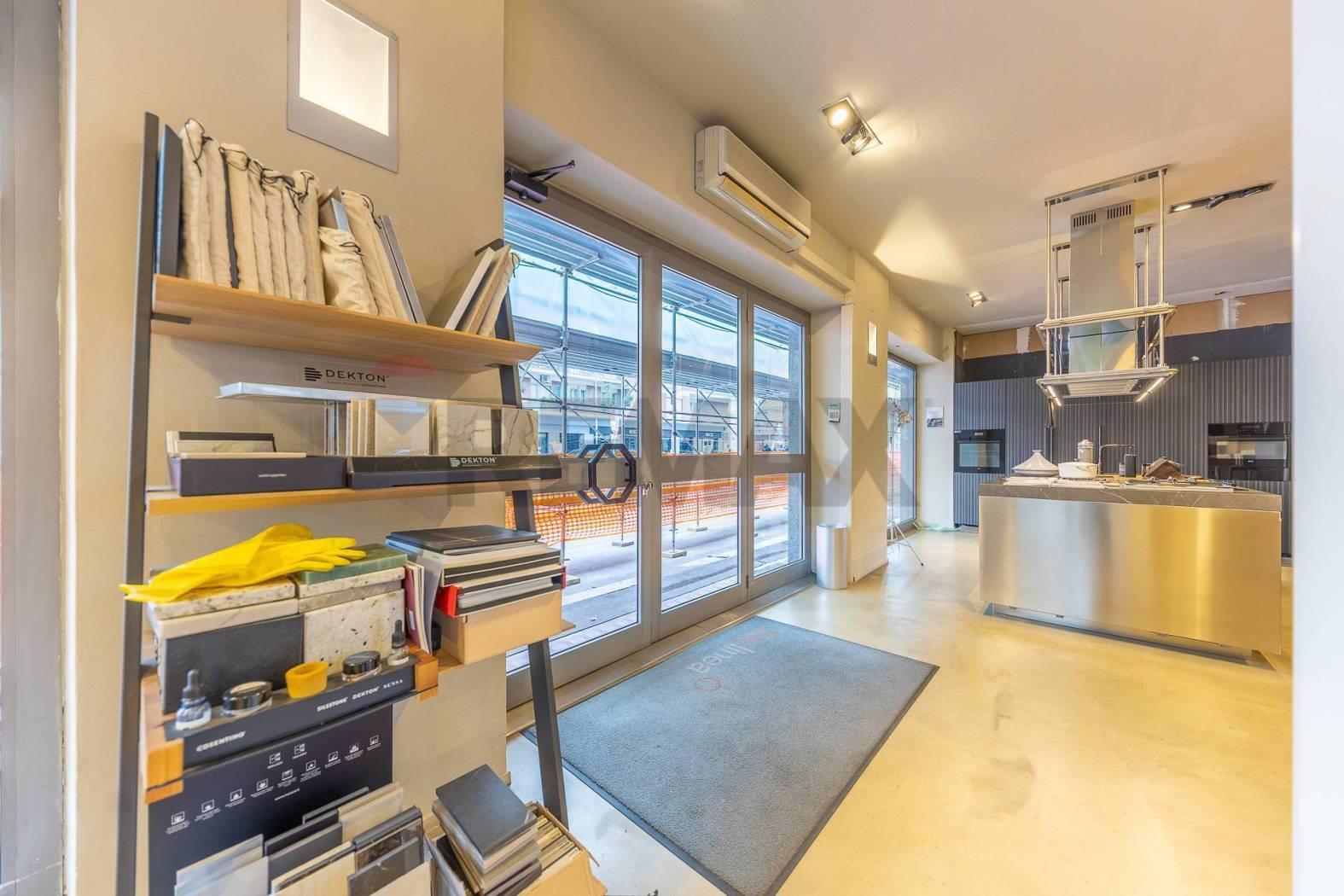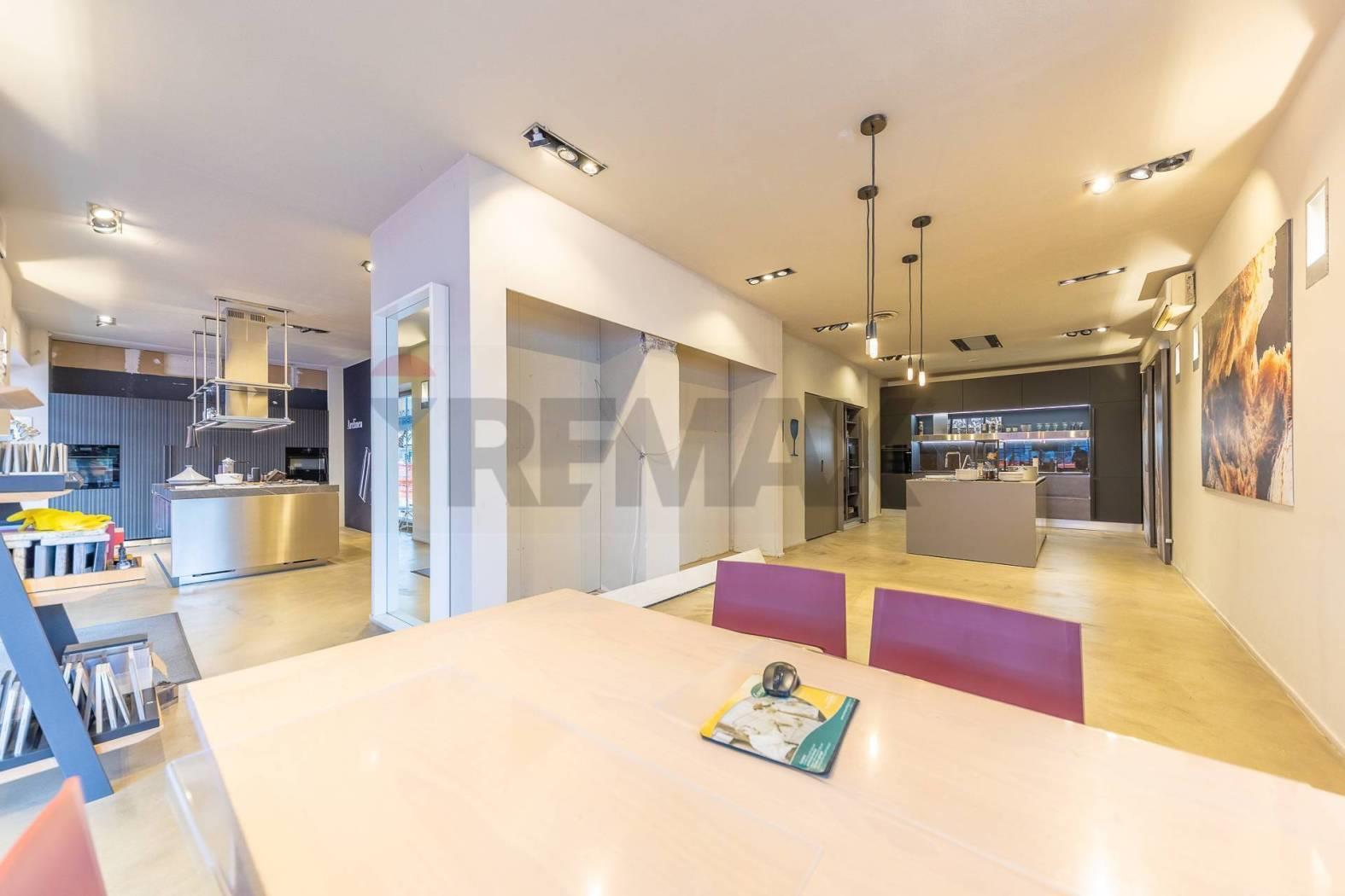 Caratteristiche Principali: Piano Terra su strada: Un ampio open space estremamente luminoso grazie alle quattro grandi vetrine su strada. Lo spazio espositivo vanta soffitti alti ben 3,50 metri e include un servizio igienico (WC) a norma. Attualmente allestito con raffinati arredi da cucina di design , il locale offre un ambiente accogliente e professionale.