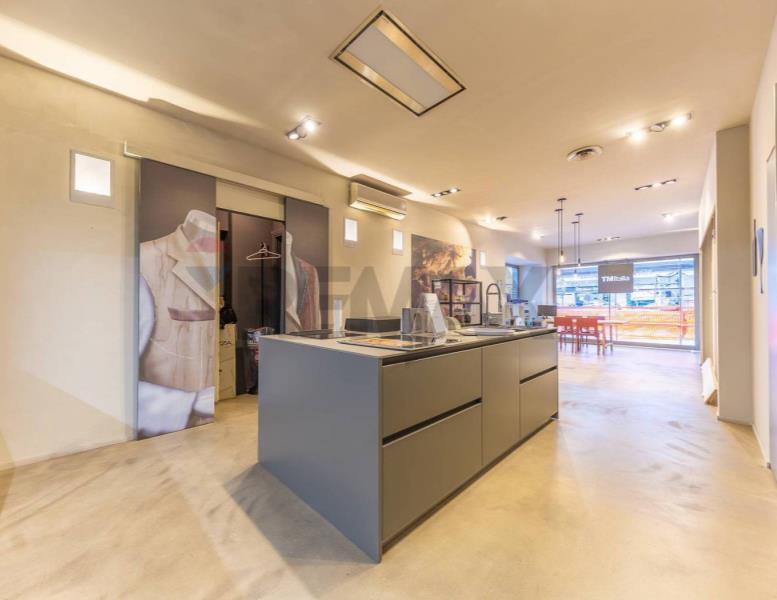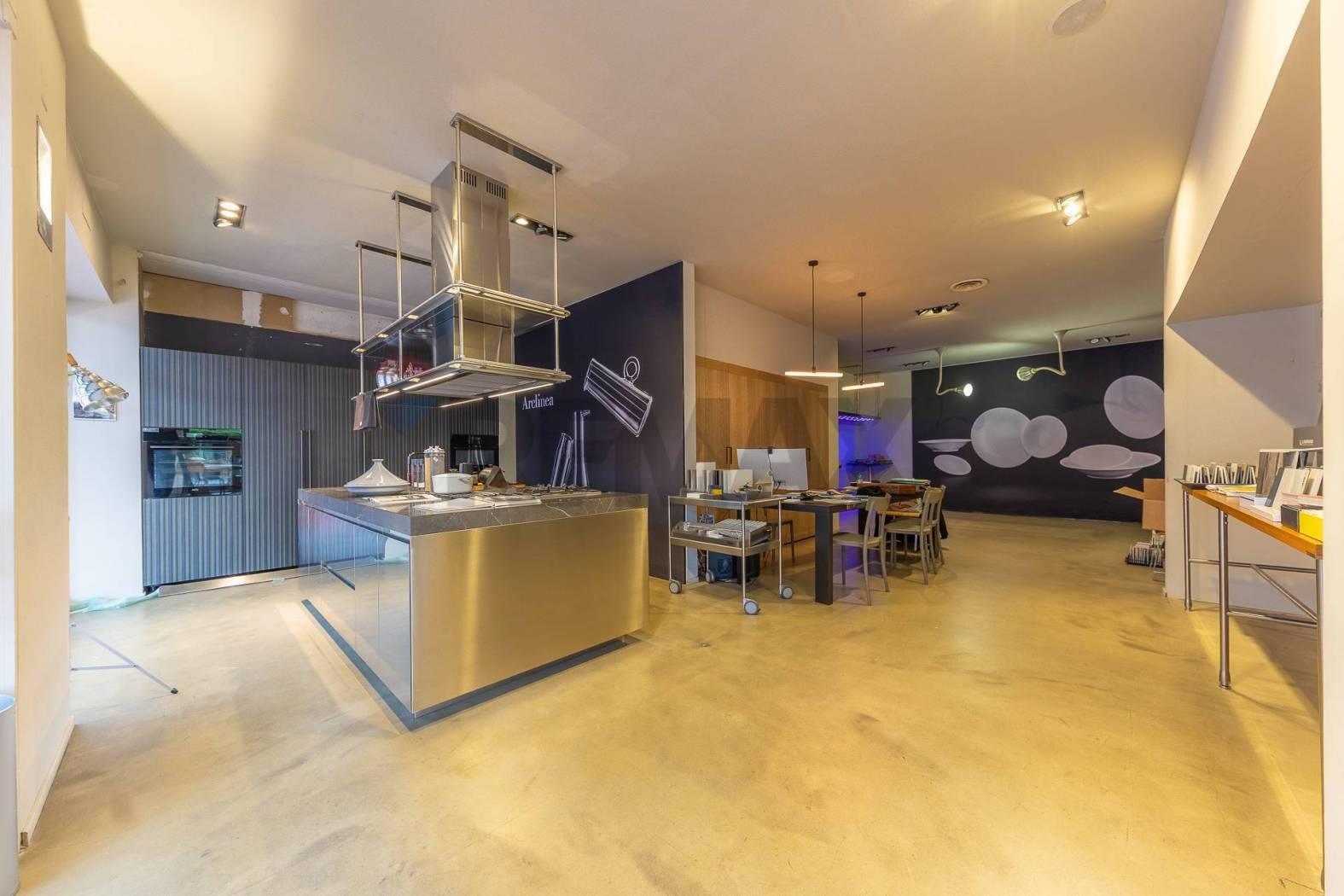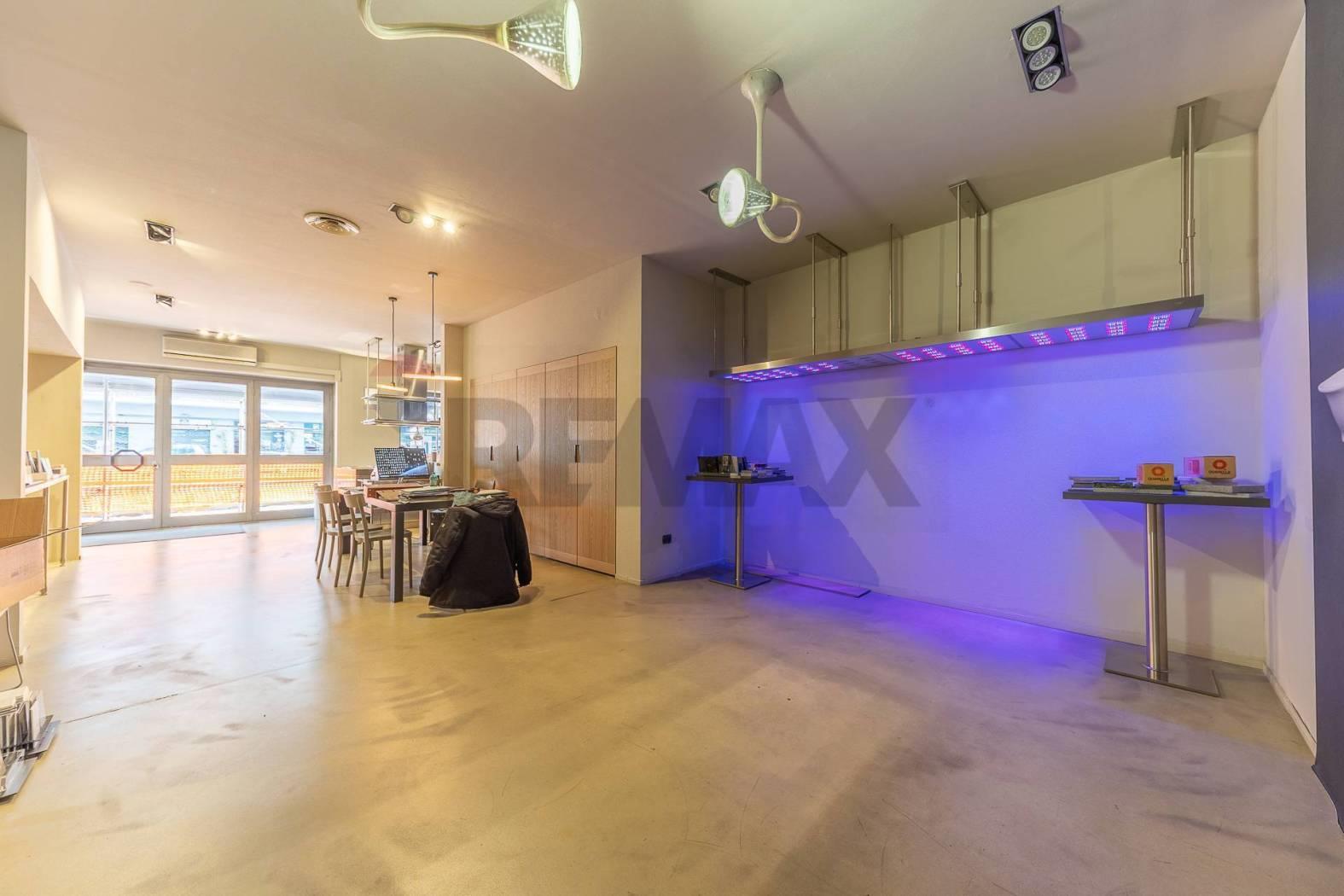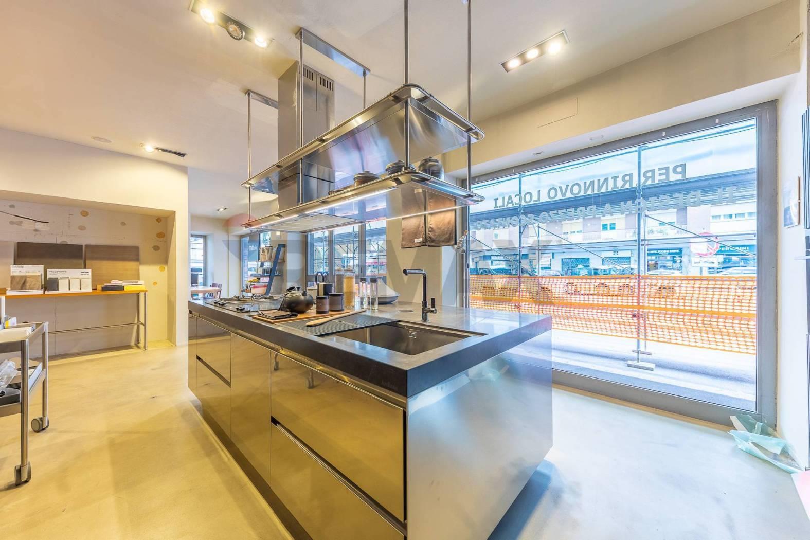 Caratteristiche Principali: Piano Terra su strada: Un ampio open space estremamente luminoso grazie alle quattro grandi vetrine su strada. Lo spazio espositivo vanta soffitti alti ben 3,50 metri e include un servizio igienico (WC) a norma. Attualmente allestito con raffinati arredi da cucina di design , il locale offre un ambiente accogliente e professionale.