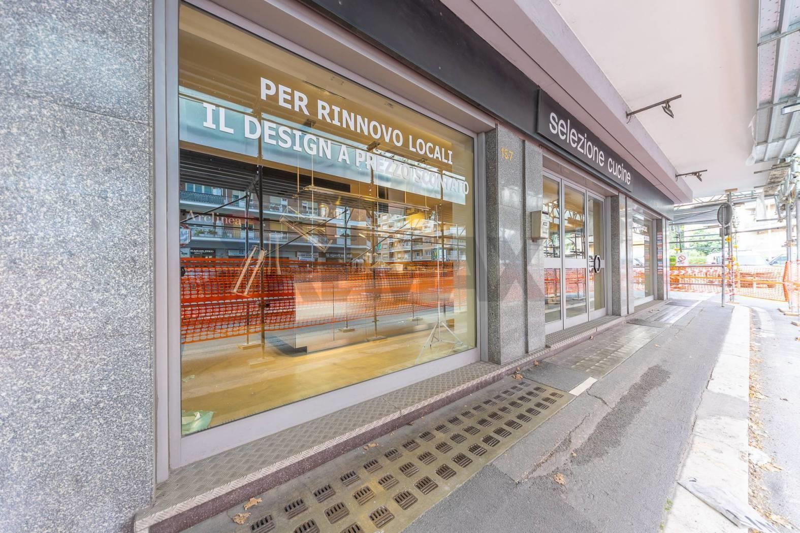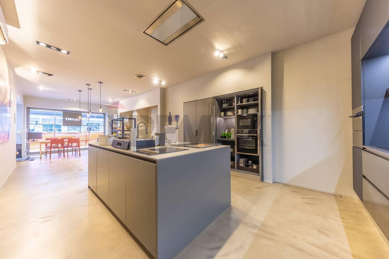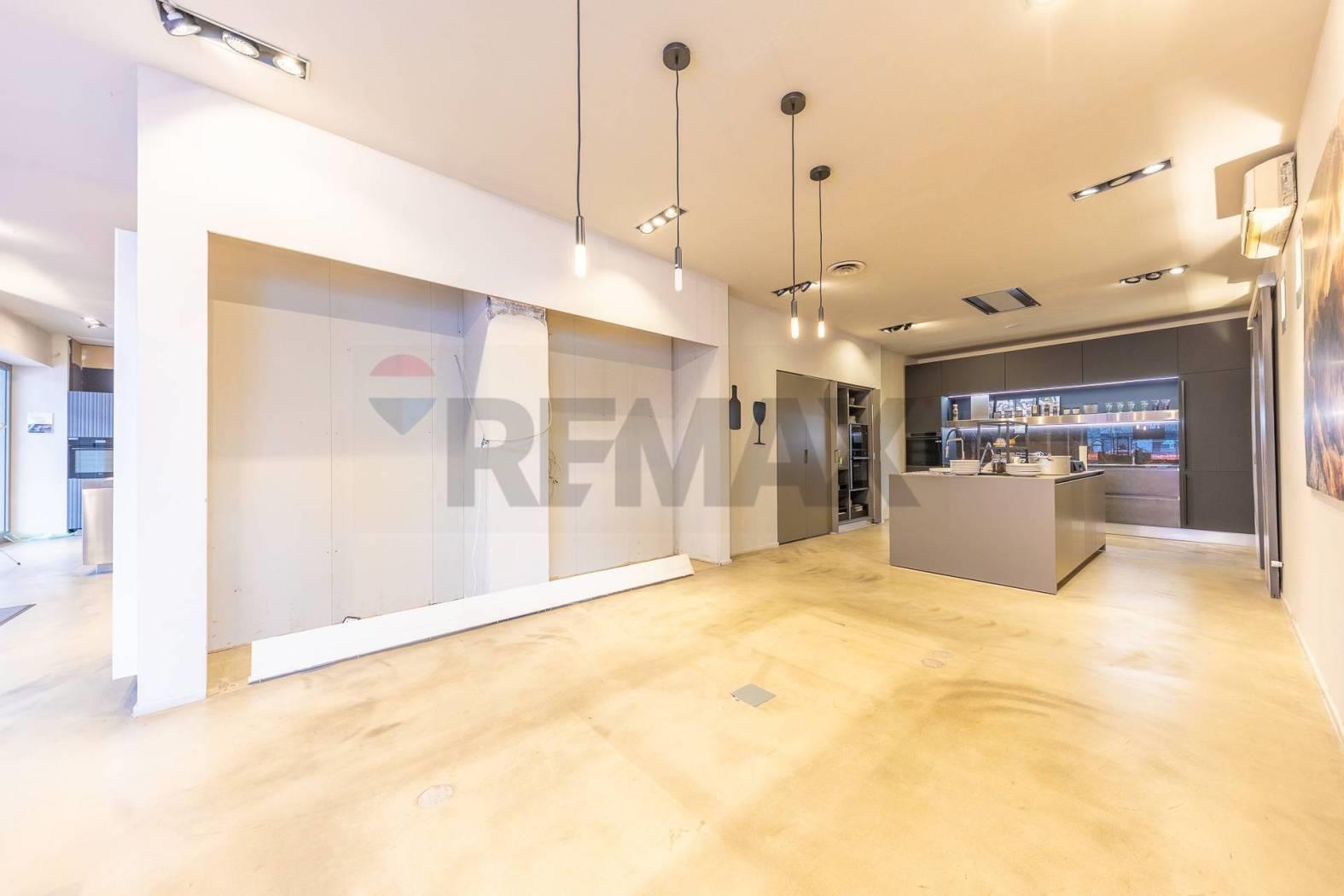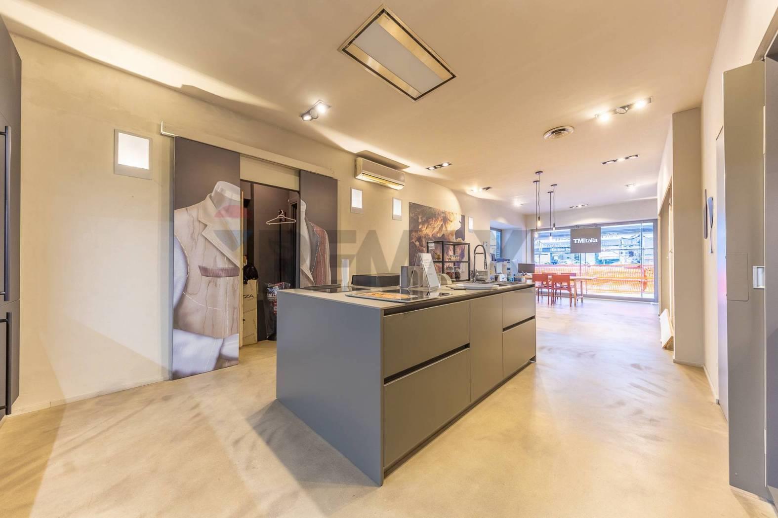 Caratteristiche Principali: Piano Terra su strada: Un ampio open space estremamente luminoso grazie alle quattro grandi vetrine su strada. Lo spazio espositivo vanta soffitti alti ben 3,50 metri e include un servizio igienico (WC) a norma. Attualmente allestito con raffinati arredi da cucina di design , il locale offre un ambiente accogliente e professionale.