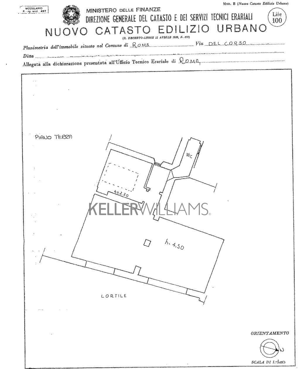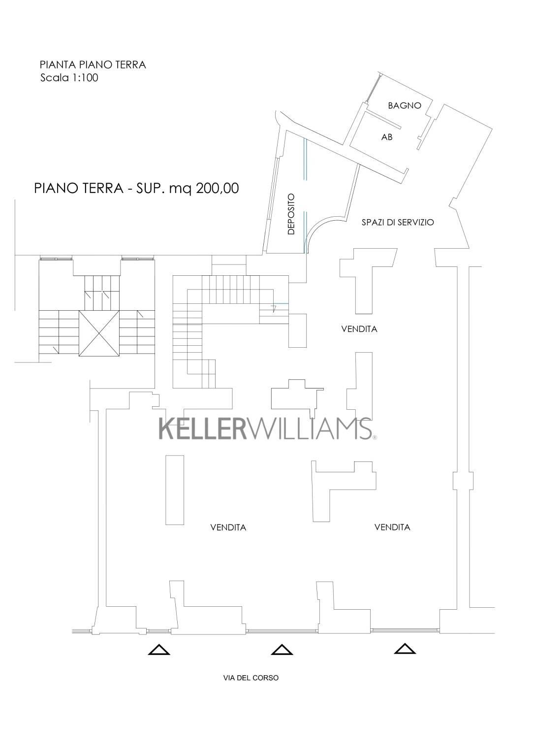 Al piano terra C/1 di circa 220 mq, troviamo tre ampie vetrine, un ripostiglio e due bagni, i soffitti alti 4,50 metri rendono l’ambiente luminoso e arioso.