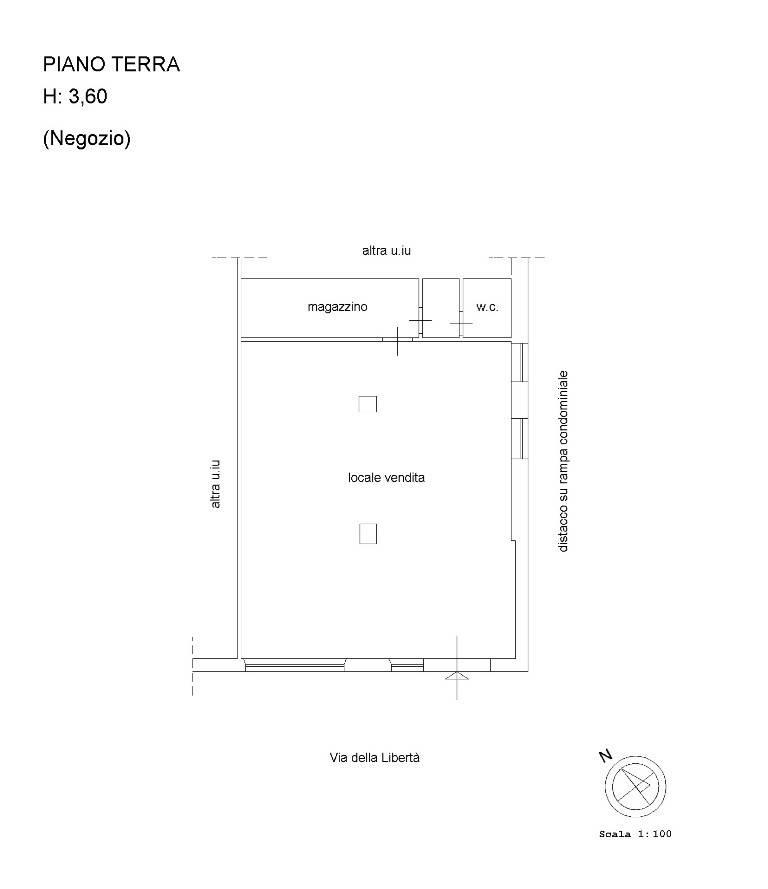 Via della Libertà, locale commerciale di 85 mq circa con bagno e antibagno. Doppia vetrina.