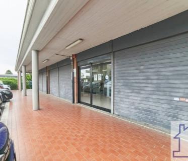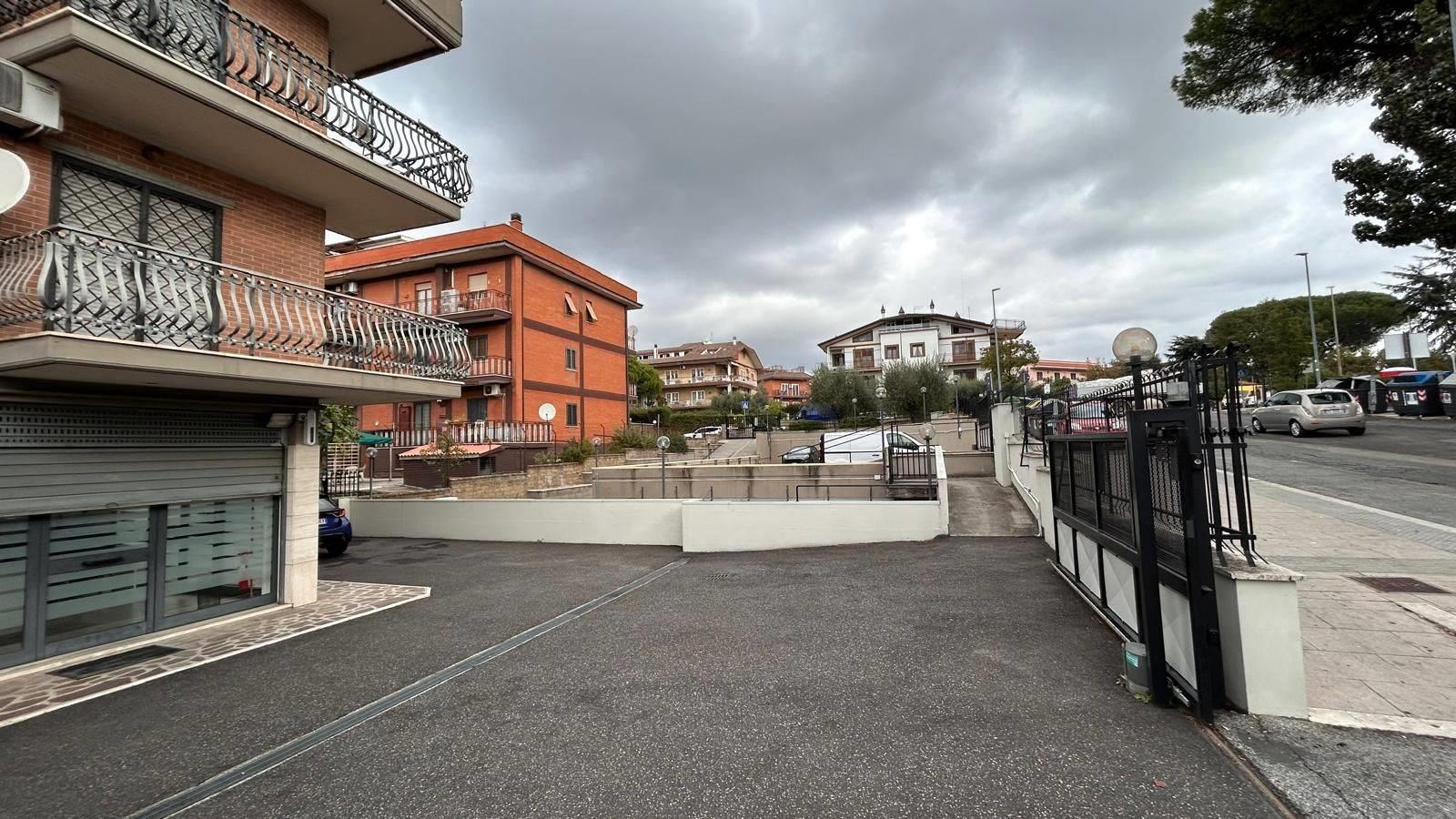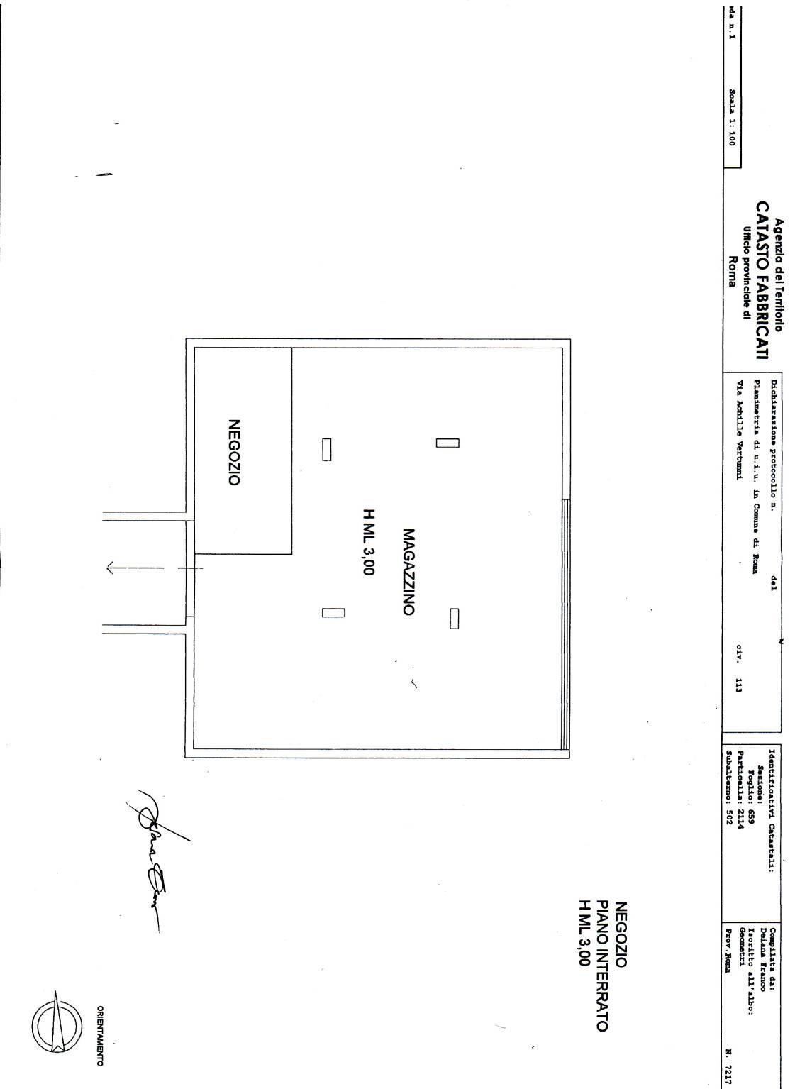 al piano terra negozio di mq. 100 (categoria catastale C/1) con tre vetrine e piazzale antistante carrabile di mq.150 e accesso pedonale all’ulteriore parcheggio carrabile di mq.200;