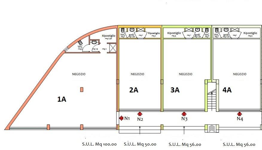 Tipologia 3A 56 mq con ampia vetrina, composto :