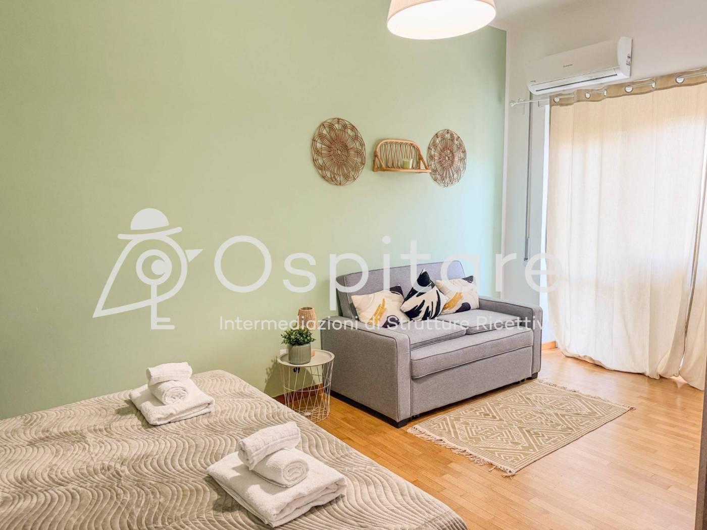 L’appartamento di circa 65mq, è stato ristrutturato di recente ed è posto al sesto piano, all’interno di un palazzo signorile dotato di ascensore e si compone di: salone con divano letto, camera da letto matrimoniale (con divano letto singolo aggiuntivo), cucinotto separato, bagno e balconcino. L’appartamento può ospitare fino ad un massimo di 5 ospiti.