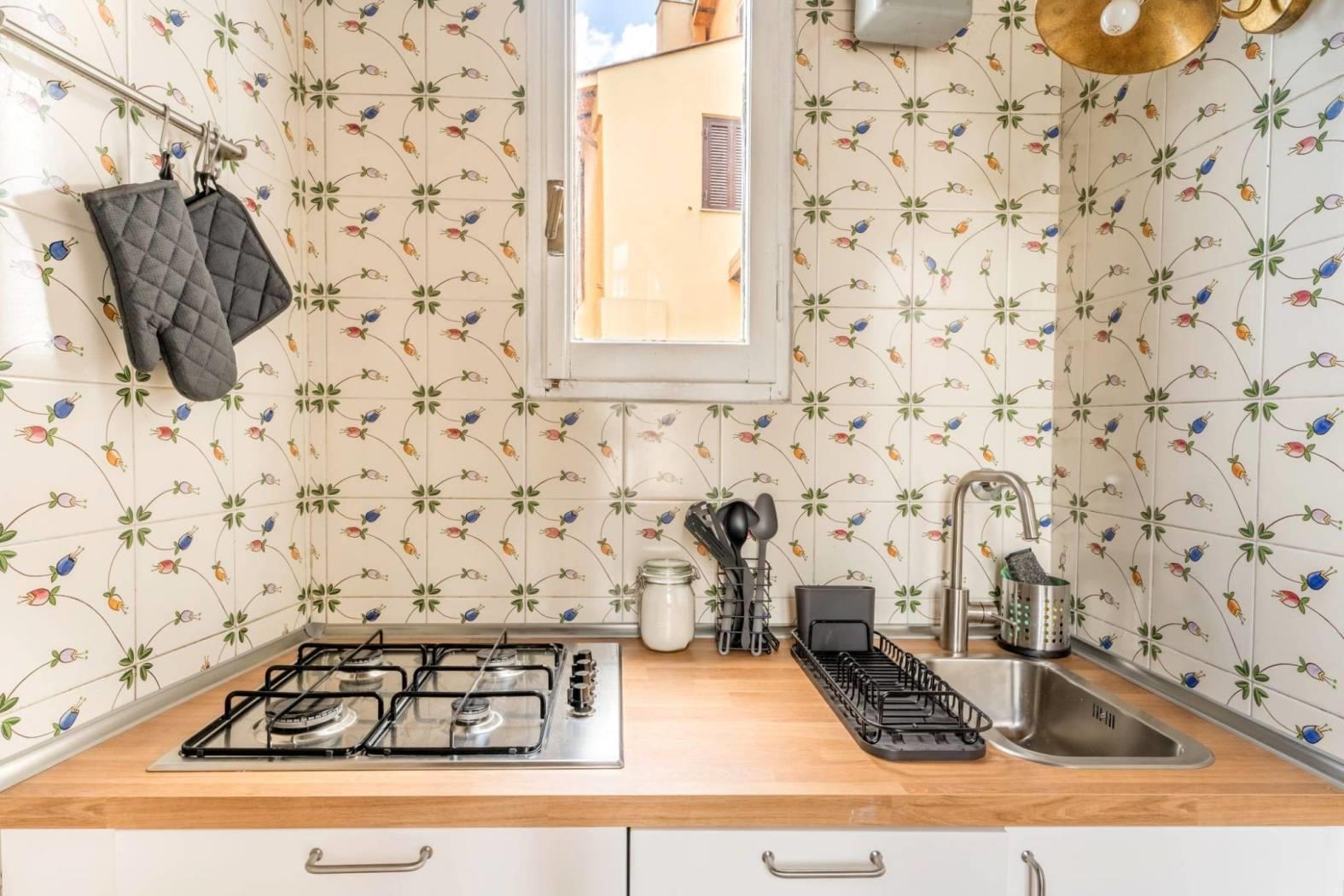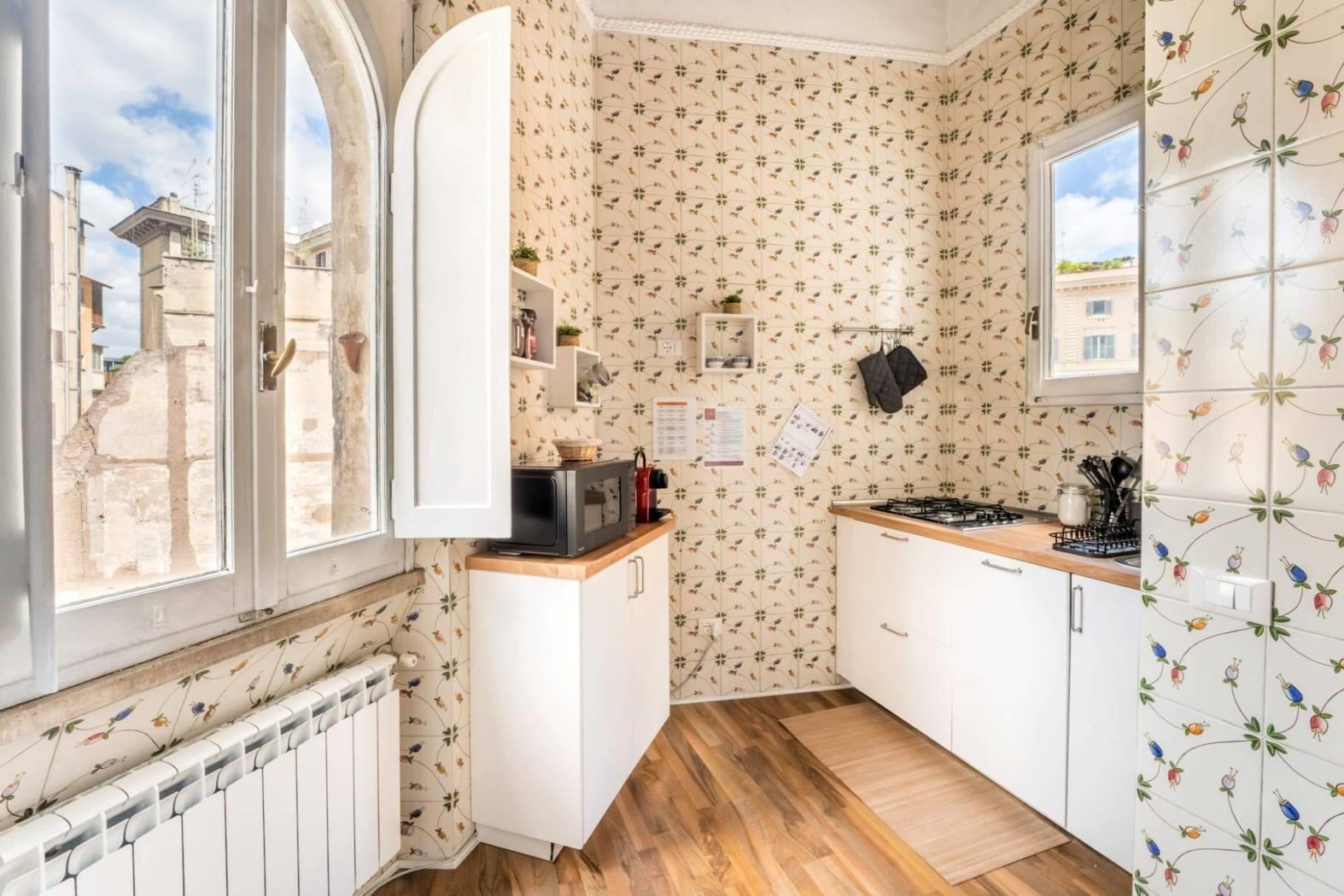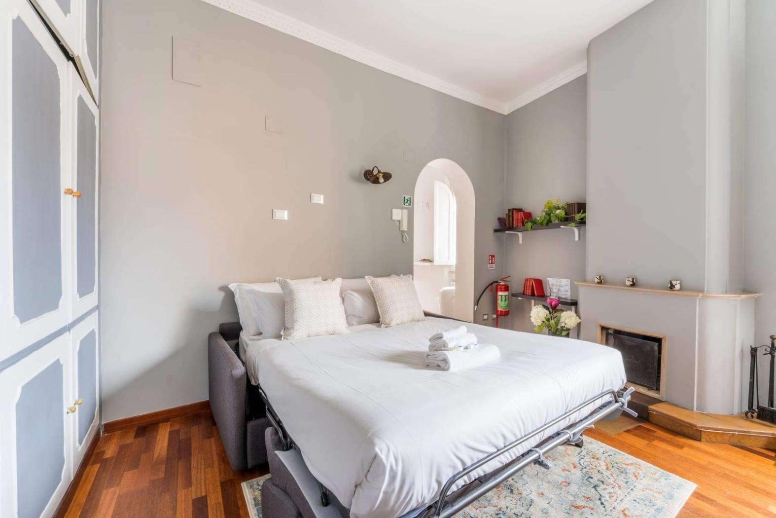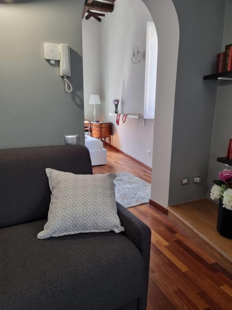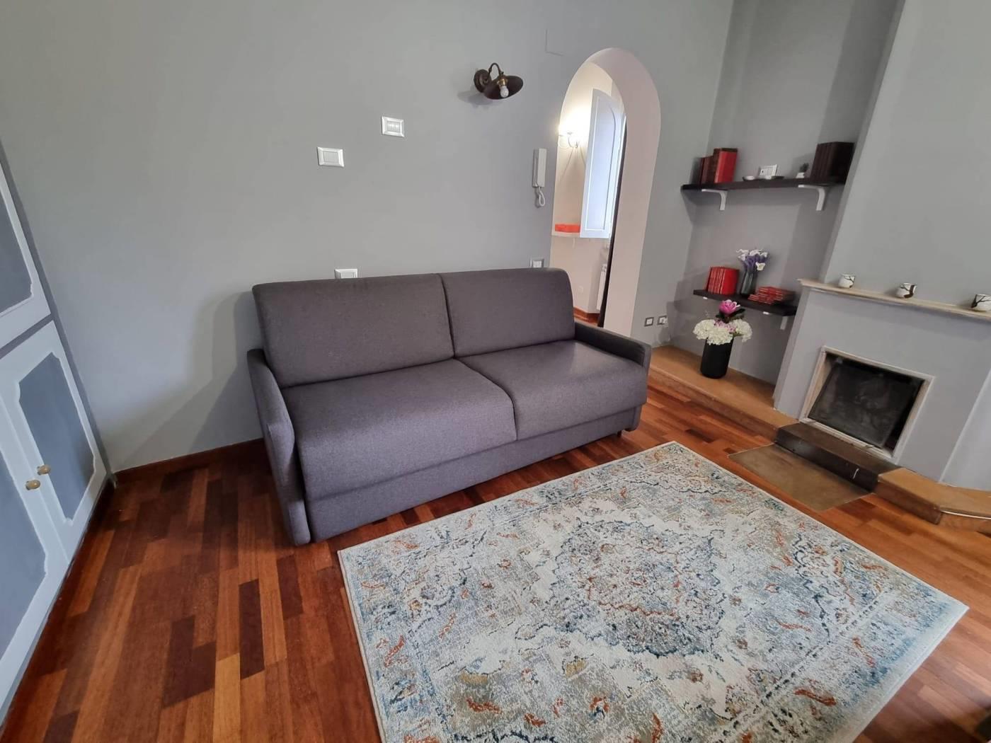 L'immobile, di circa 57 mq interni, situato al terzo piano di uno stabile d’epoca non provvisto di ascensore, si trova in ottimo stato di manutenzione e risulta così composto: ingresso, comodo soggiorno con divano letto matrimoniale, camera da letto matrimoniale, cucinotto, bagno.