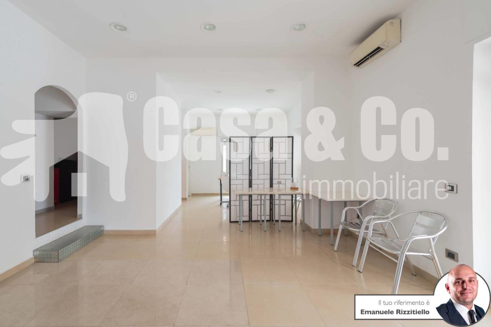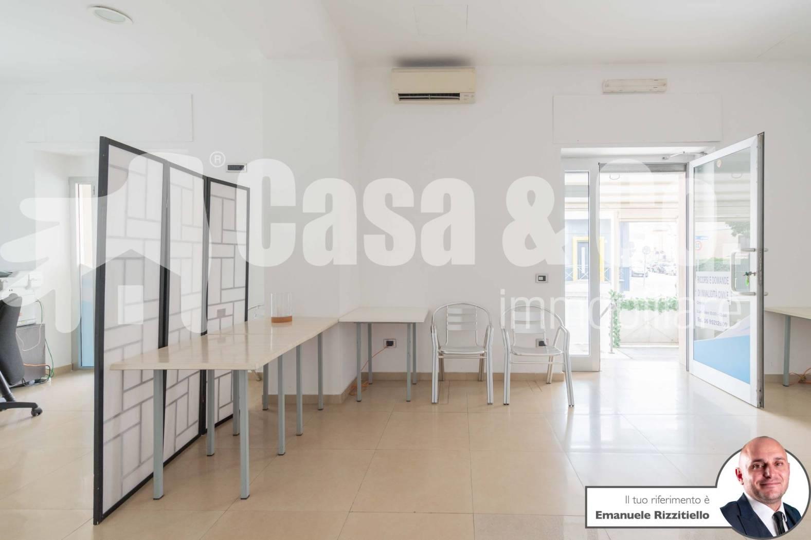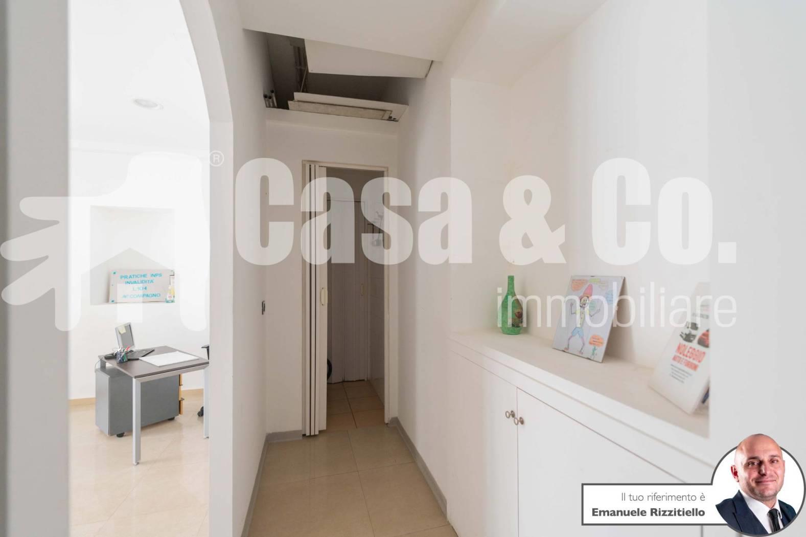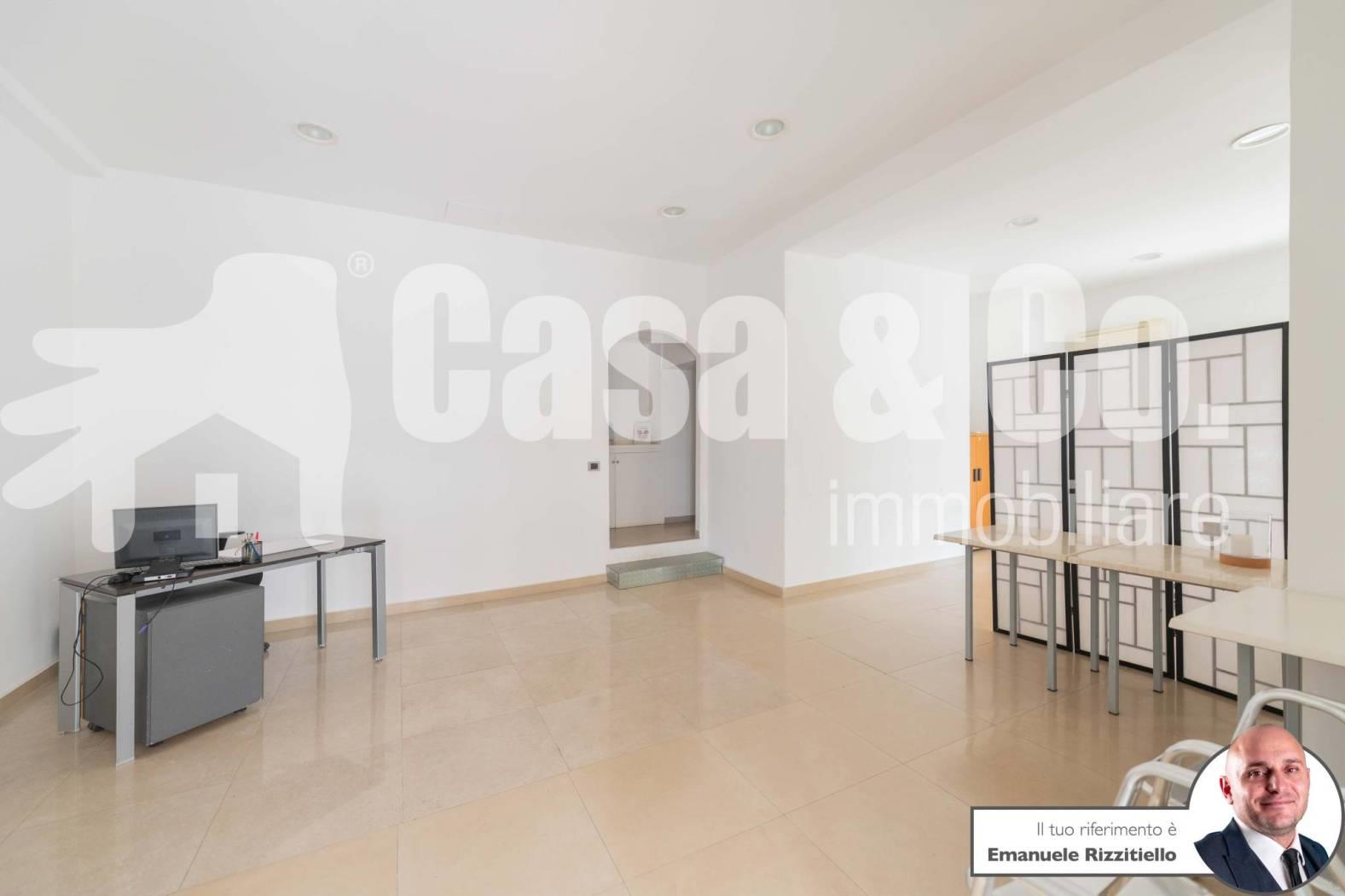 E' composto da: un ambiente unico più zona sevizio con bagno. Si presta bene sia come negozio di vendita al dettaglio ma anche come ufficio/studio professionale.