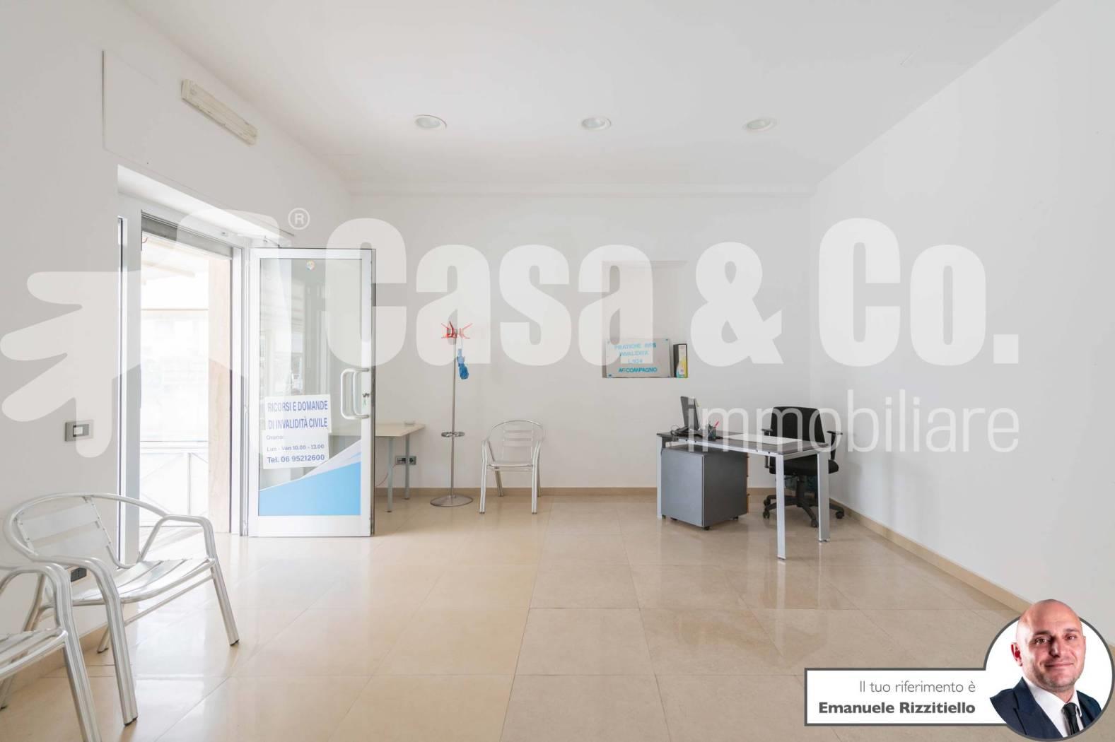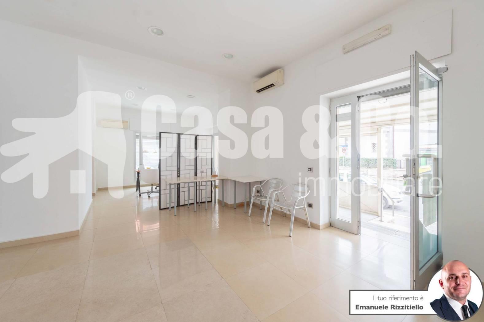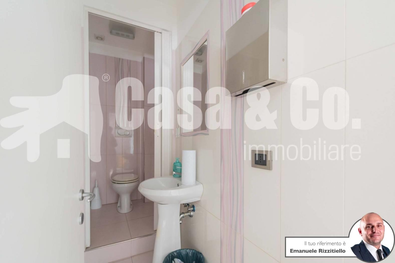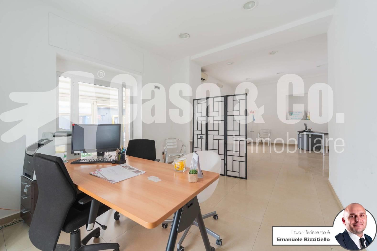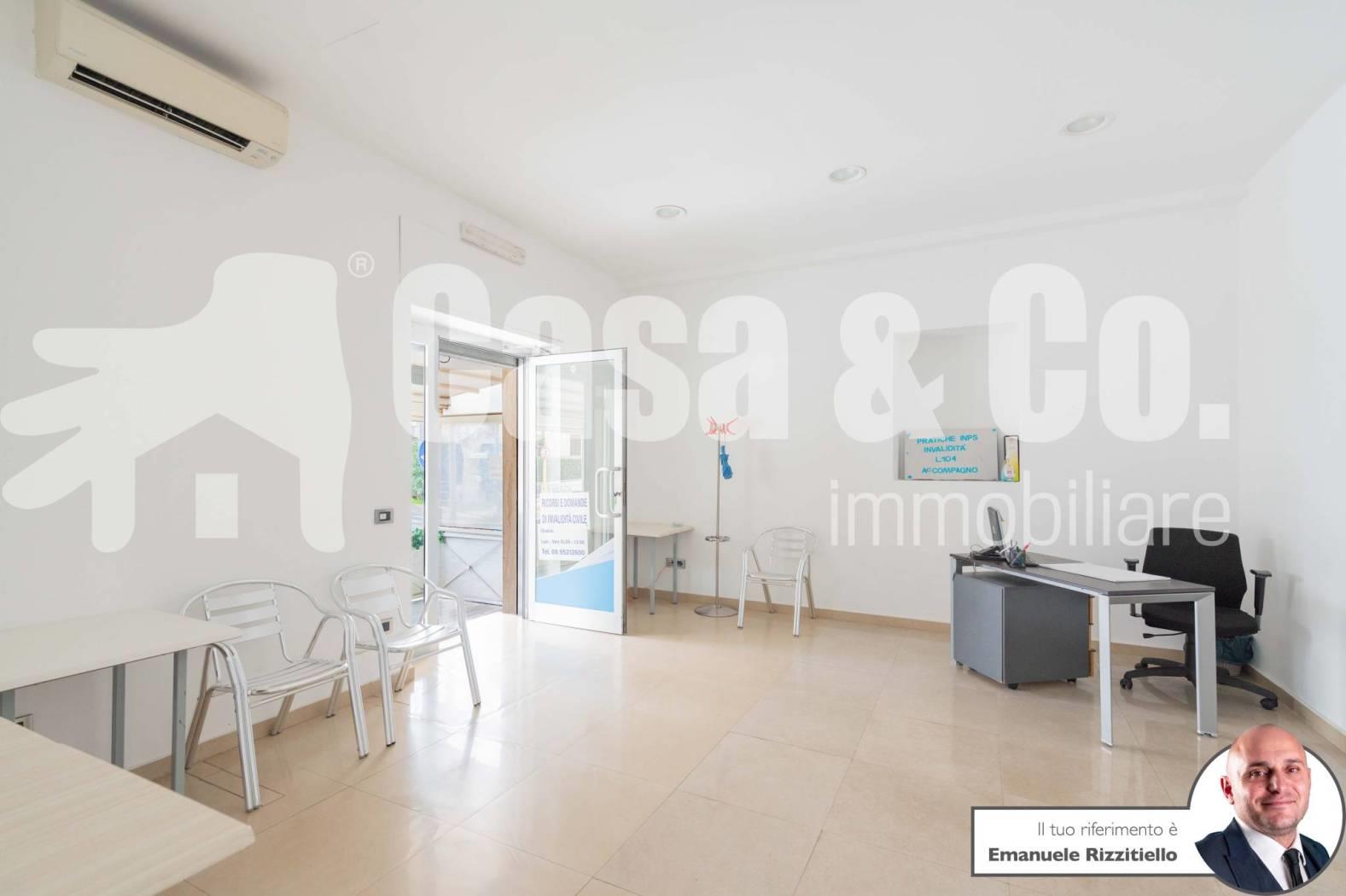 E' composto da: un ambiente unico più zona sevizio con bagno. Si presta bene sia come negozio di vendita al dettaglio ma anche come ufficio/studio professionale.