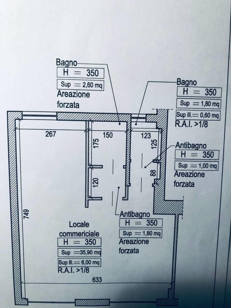 Il locale dotato di due vetrine su strada, si sviluppa su un unico livello per un totale di mq 48 c. a.,