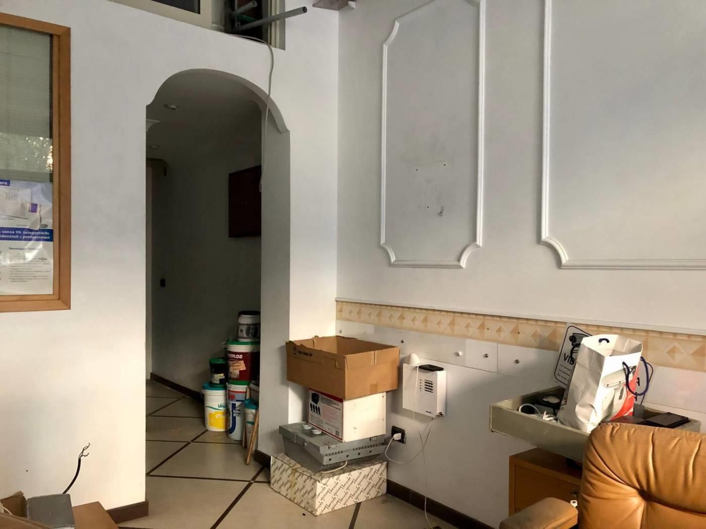 All’interno il locale è diviso in 2 ambienti che comunicano visivamente tramite una parete finestrata ed in fondo è presente anche un bagno con finestra che affaccia nella chiostra interna. Soffitti alti più di 4 metri. Impianto elettrico a norma.