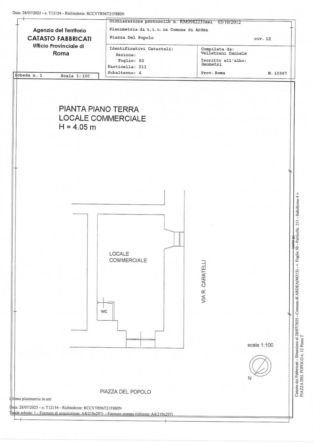 Proponiamo in vendita un negozio in posizione centrale al centro storico di Ardea, vicino al bar centrale; l'ingresso dalla porta principale (munita di grate) si apre su un ampio spazio, attualmente suddiviso in due stanze da una parete di cartongesso eventualmente rimovibile con finestra laterale e piccolo bagno di servizio. Non c'è possibilità di installare la canna fumaria. Il negozio si presenta in buone condizioni, subito utilizzabile.
