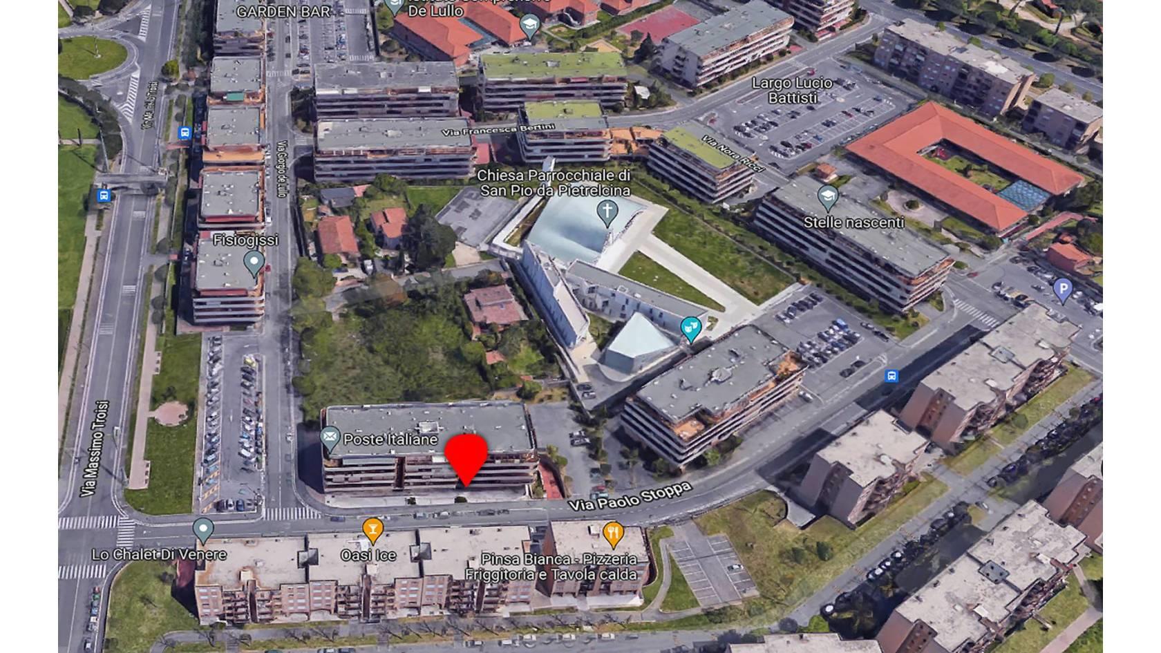 Il locale è situato in Via Paolo Stoppa, arteria principale della zona che offre un'ottima visibilità. L'area, ad elevata densità demografica (12.000 abitanti circa), è comodamente raggiungibile con i mezzi pubblici (Metro B ed autobus).