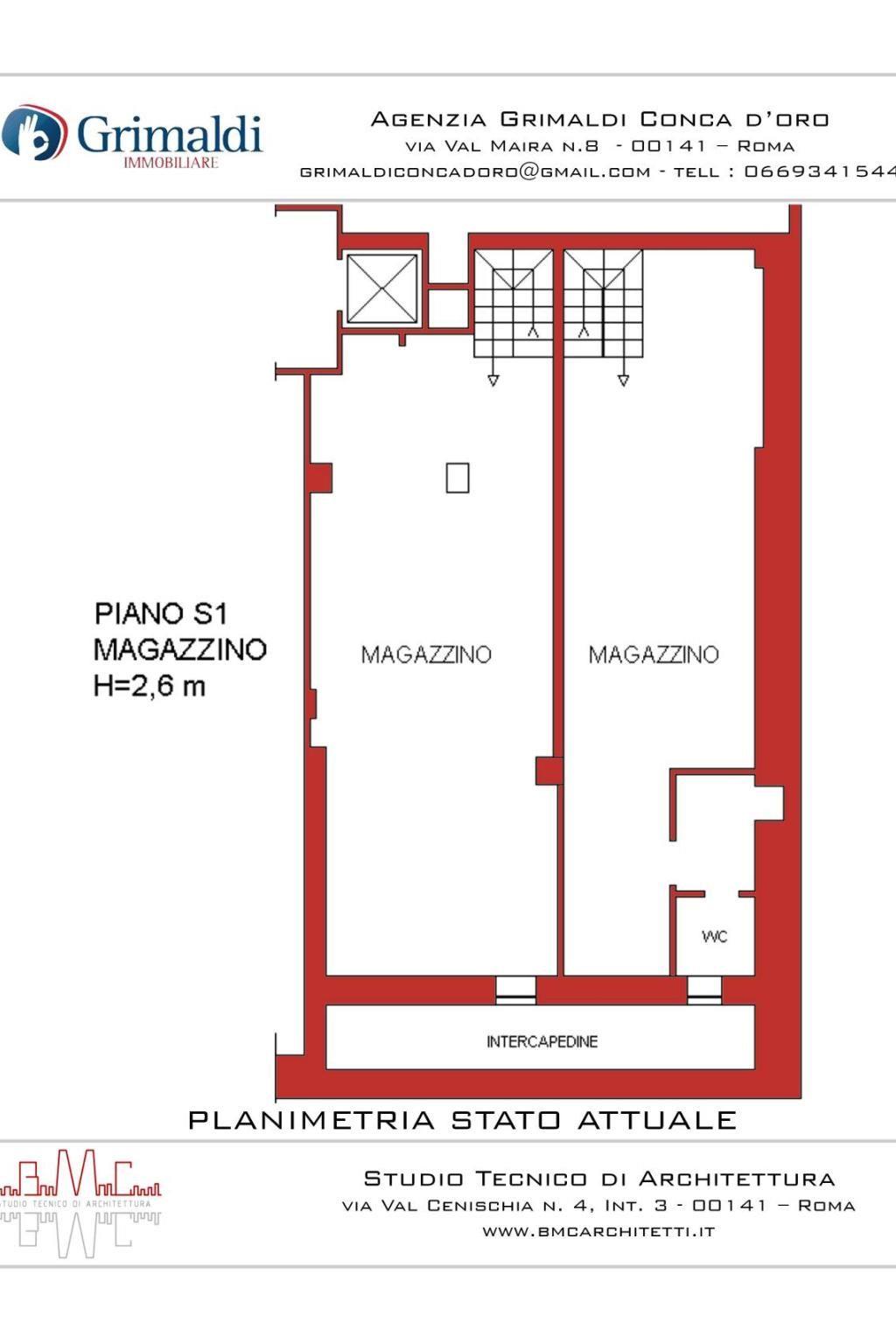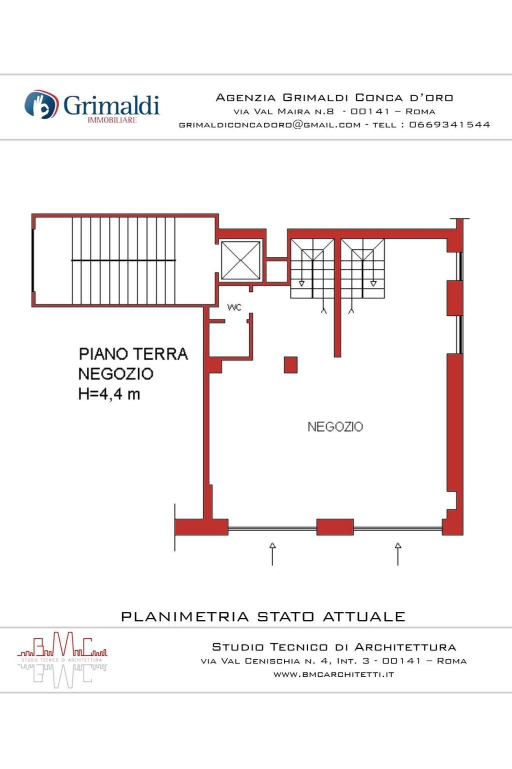 Via Conca d'Oro, a pochi minuti a piedi dalla metropolitana B1 fermata "Conca D'Oro", nelle immediate vicinanze di tutti i principali servizi, proponiamo in vendita un negozio di 80 mq con due vetrine su strada posto al piano terra di una palazzina di totali piani cinque. Il negozio è composto da 80 mq al livello strada con un bagno e un ampio magazzino di 110 mq con un secondo bagno al piano S1. Attualmente è locato ad uso Minimarket con una rendita mensile di € 2.300,00.