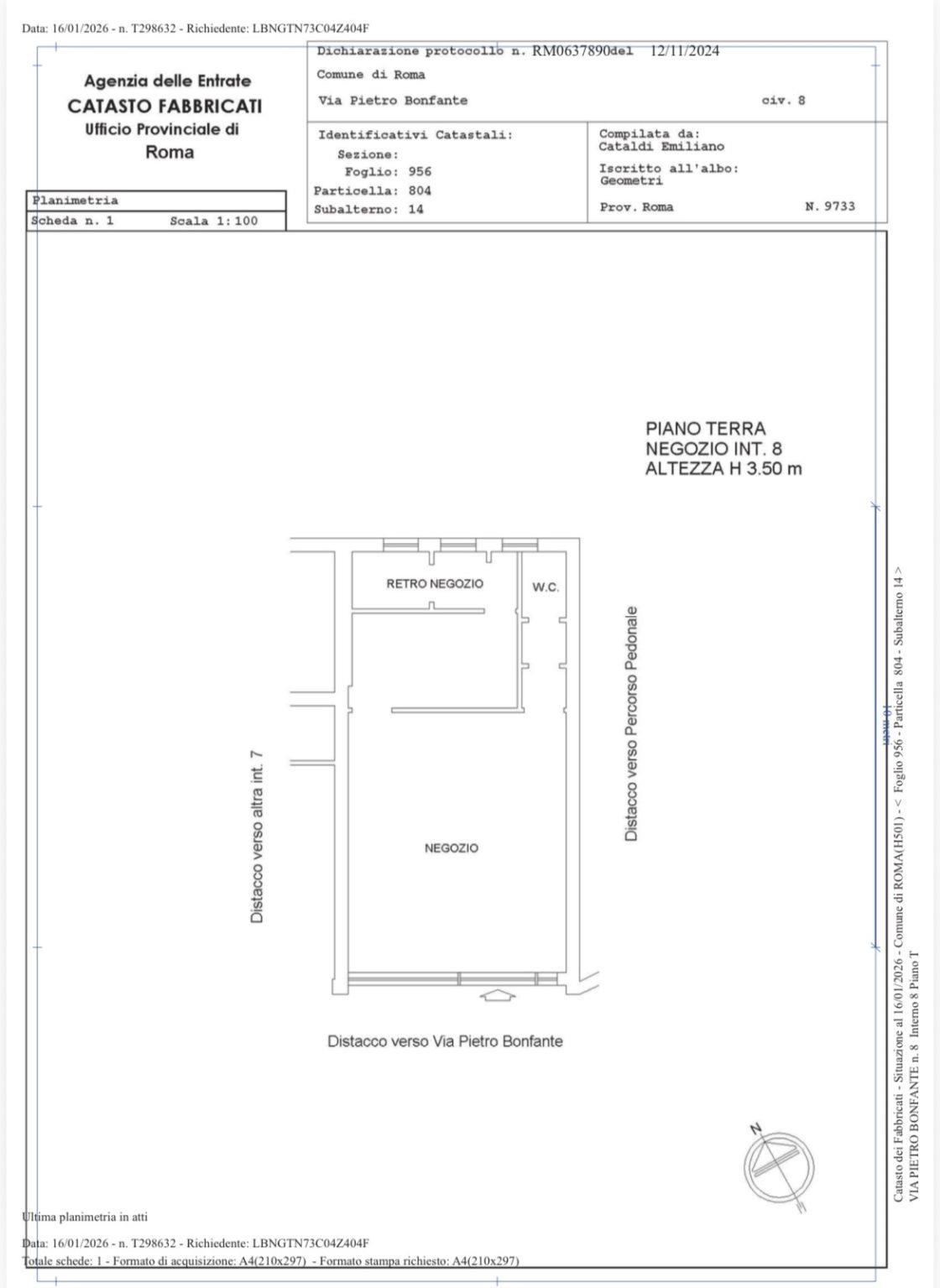 L'immobile è situato in via Enrico Bonfante, nel quartiere Cinecittà, in una posizione strategica caratterizzata da un intenso flusso pedonale. La zona è ben servita, con scuole nelle immediate vicinanze e la fermata della metropolitana a circa 500 metri, che assicura un comodo collegamento con i trasporti pubblici. Si tratta di un locale commerciale di 50 mq, dotato di canna fumaria. L’unità si presenta in buono stato ed è disponibile per una locazione immediata.