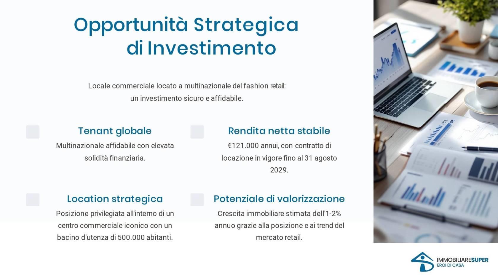 Presentiamo un asset immobiliare unico: un locale commerciale di alta qualità, affittato a una multinazionale leader nel settore abbigliamento.