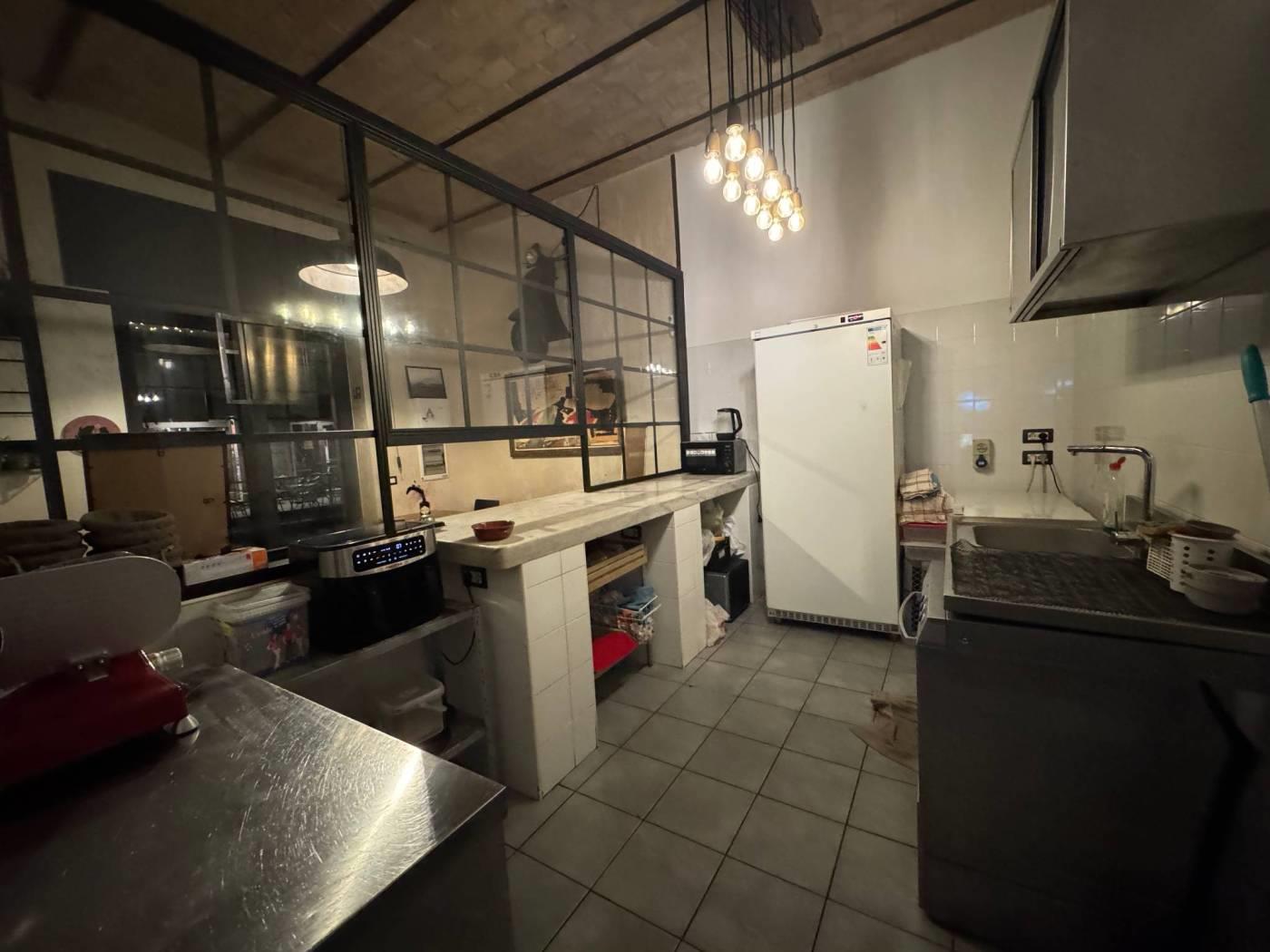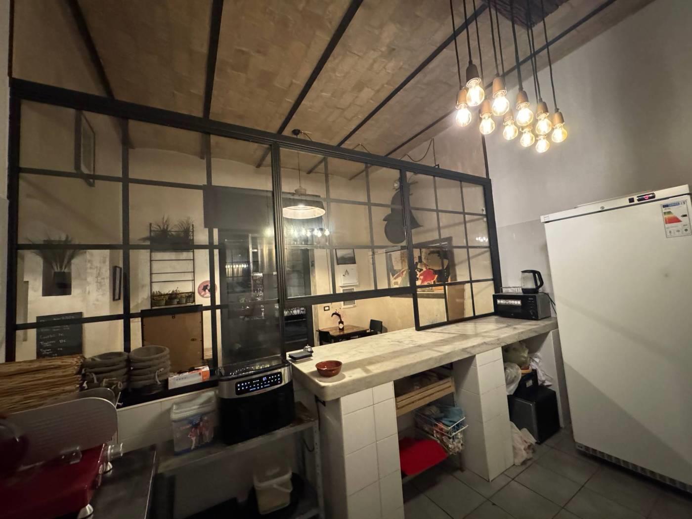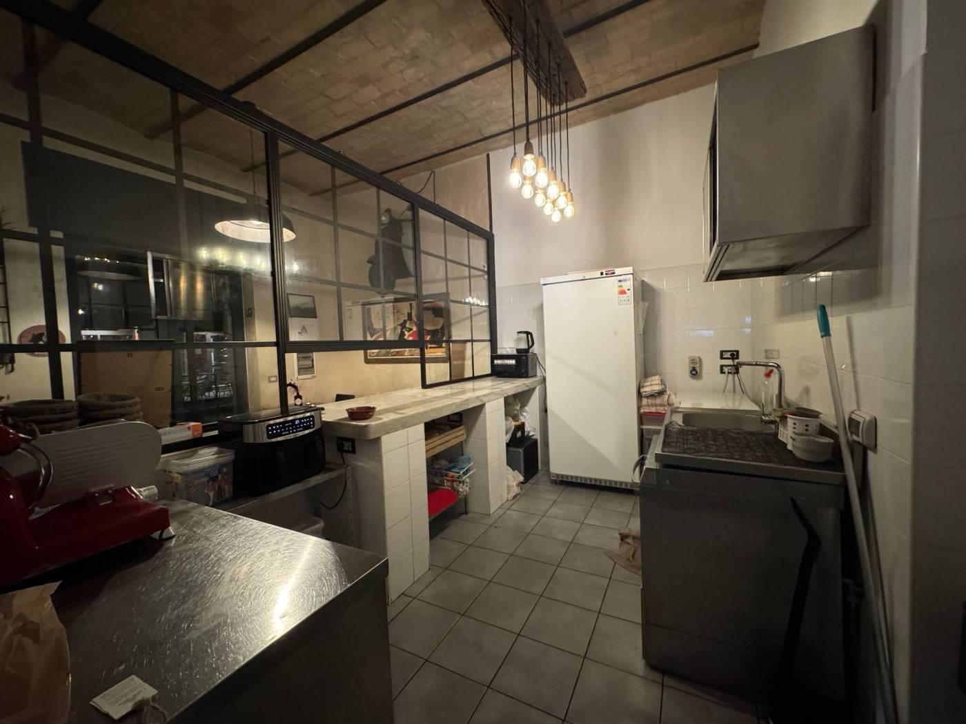 All’interno c’è un comodo bancone bar e una zona cucina a vista per allestire piatti veloci. Non ha la canna fumaria. Ci sono due bagni, di cui uno per disabili ed un magazzino. All’interno è tutto ben ristrutturato con caratteristici soffitti a volta ben in vista.