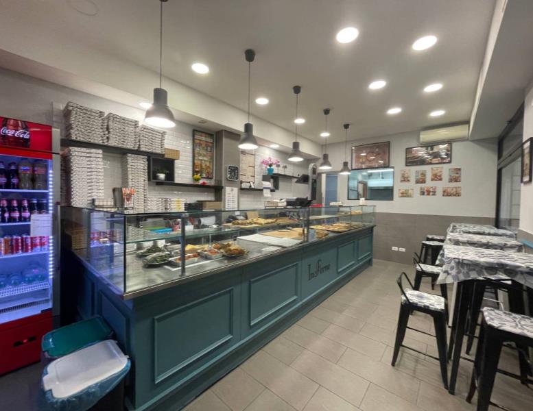 Il locale è completamente attrezzato e pronto per essere operativo da subito, ideale per pizzeria al taglio, asporto o gastronomia. Gli spazi interni sono organizzati in modo funzionale e dispongono anche di un comodo magazzino per lo stoccaggio delle merci.