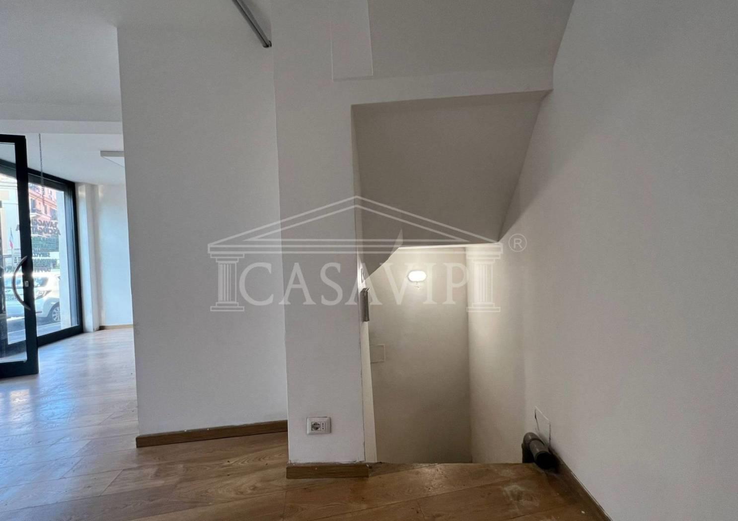 Lungo Via Morgagni, adiacente lo storico negozio “Tuttosport”, a cento metri dall’ingresso del Policlinico Umberto I, proponiamo in locazione negozio su due livelli fuori terra con doppia vetrina su strada, oltre zona magazzino.