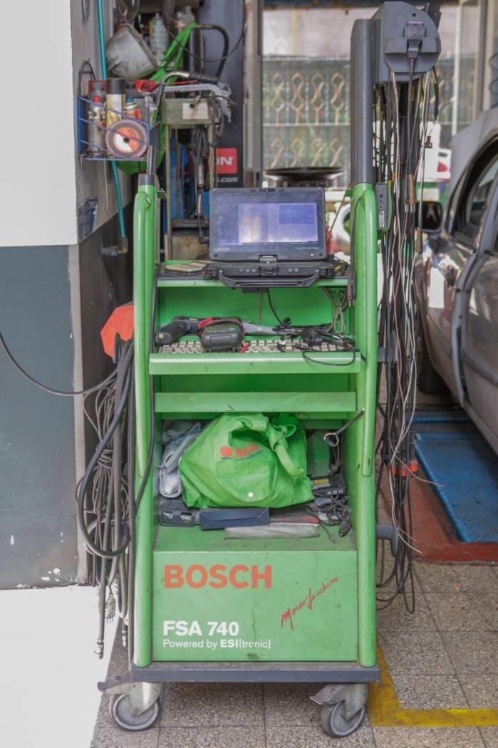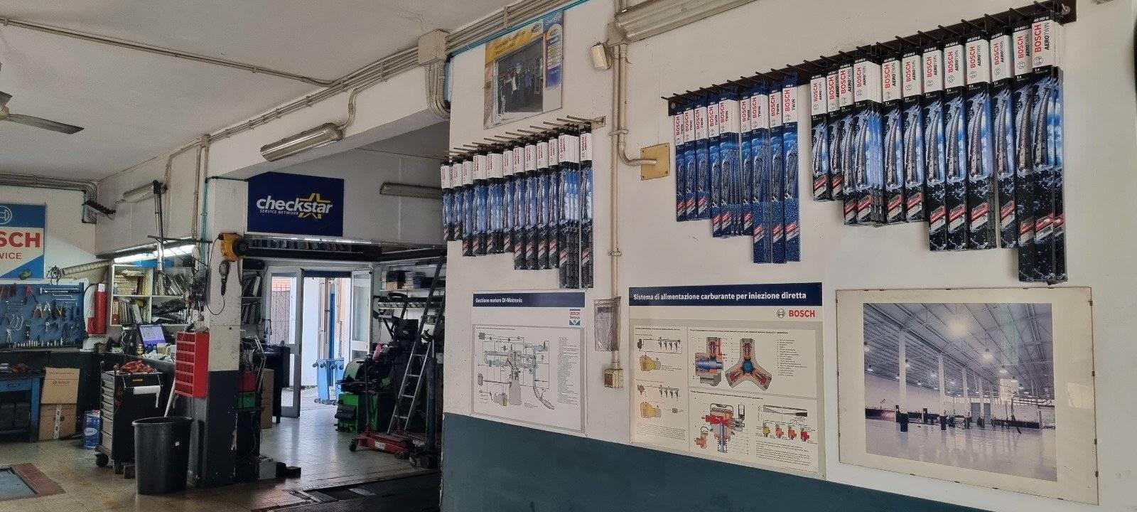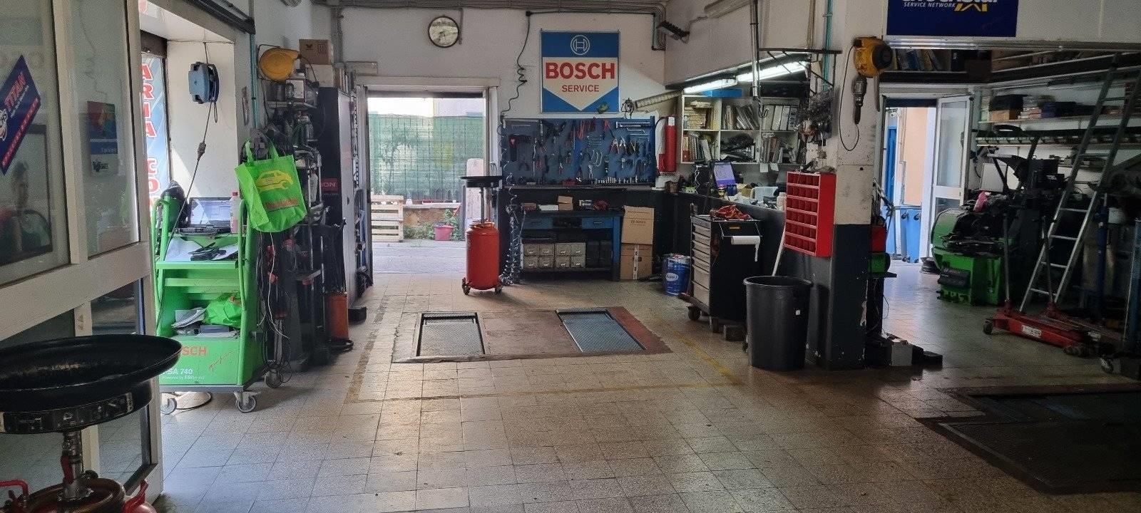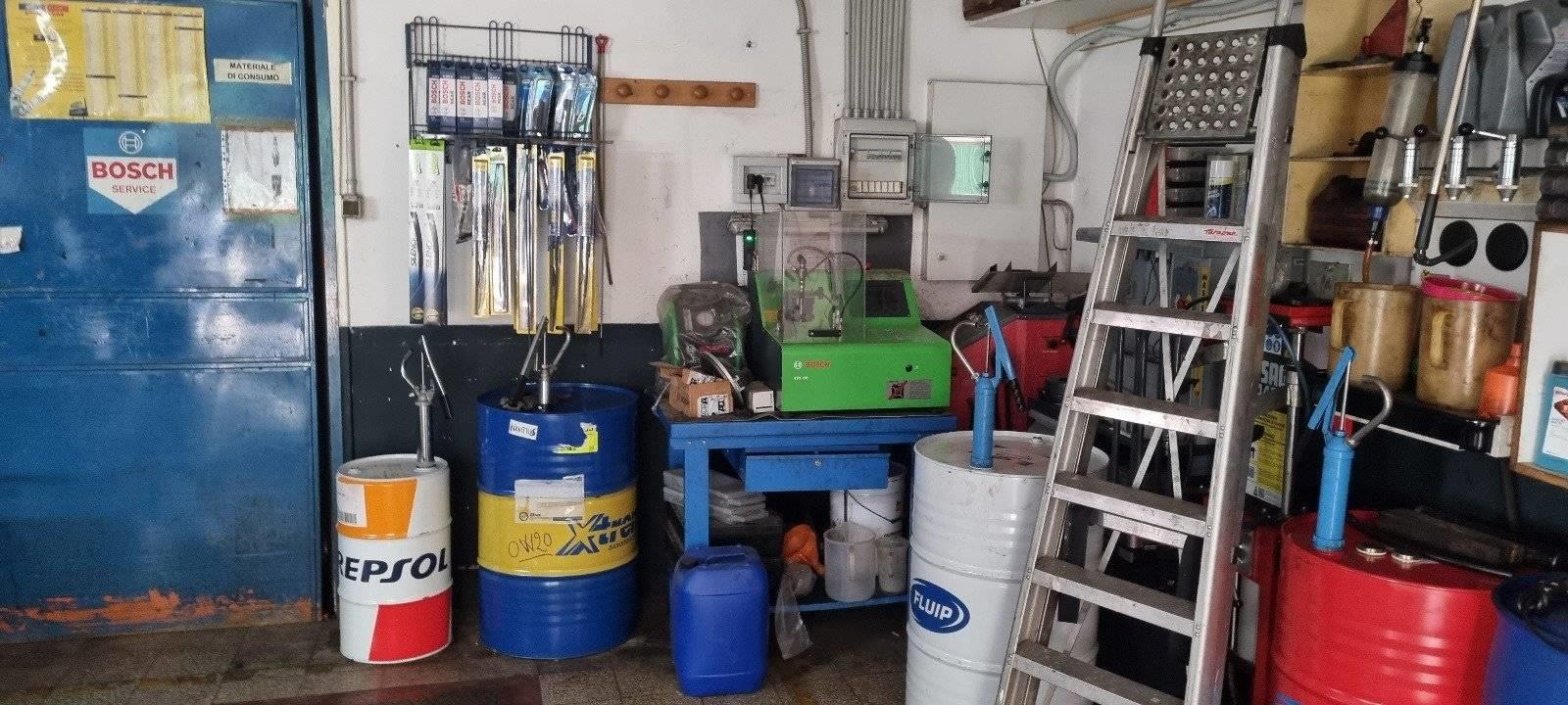 3 ponti sollevatori a scomparsa, 1 smontagomme bosch, 1 equilibratrice bosch, 1 compressore a vite, 1 vasca lavapezzi ad alta pressione, 1 banco prova iniettori diesel bosch, 1 banco prova spin iniettori benzina,1 stazione ricarica aria cobndizionata r 134 bosch, 1 stazione ricarica aria cobndizionata r 1234 yf bosch, 1 macchinario svuota serbatoio e lavaggio iniettori, 1 carrello ferri,.1 condizionatore ufficio, impianto di allarme officina con assistenza, 1 morsa, 2 banchi di lavoro, crick, cavalletto x cambi.