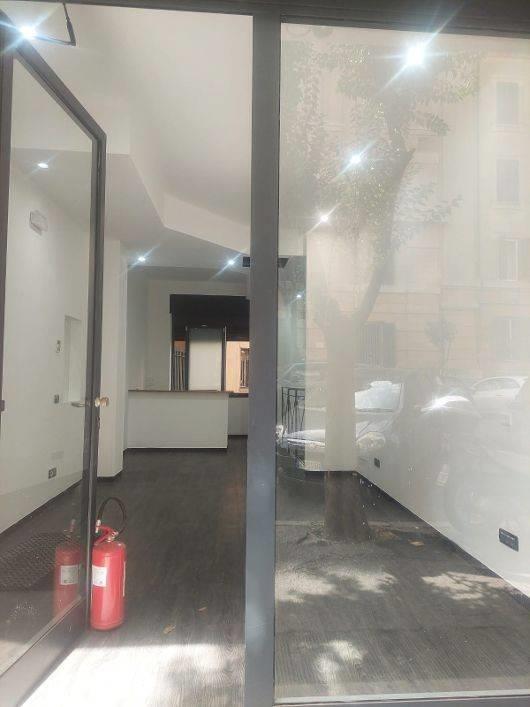 Nel signorile contesto di Via Vodice, vicinissimo a Piazza Mazzini, ubicato al piano terra di stabile in tinta , ristrutturato locale commerciale di categoria catastale C1 di mq. 30 con bagno; da scala interna si accede al piano sottostante (C2) di mq. 20 circa.