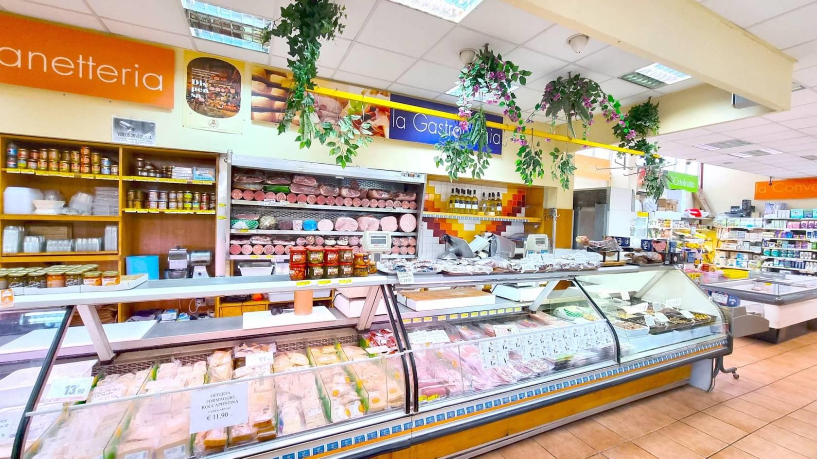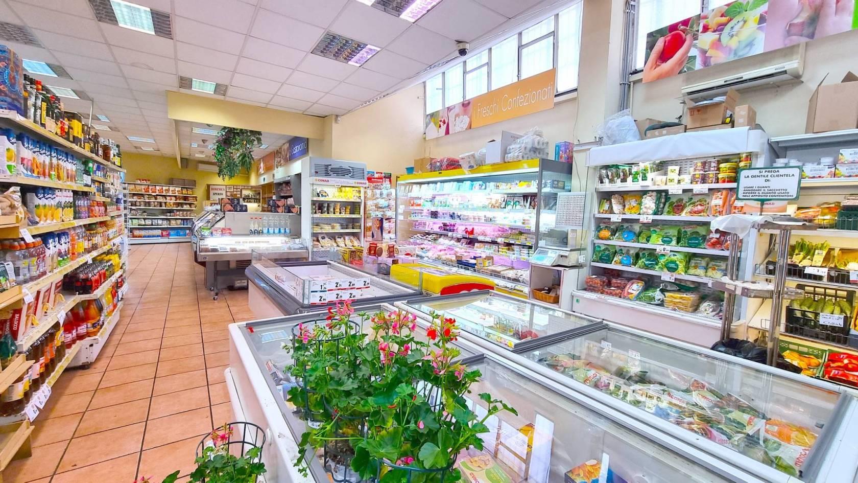 Attualmente la struttura risulta fusa con l’unità attigua, configurata come unico ambiente commerciale, per soddisfare le esigenze dell’attività precedentemente svolta, supermarket e panificazione.