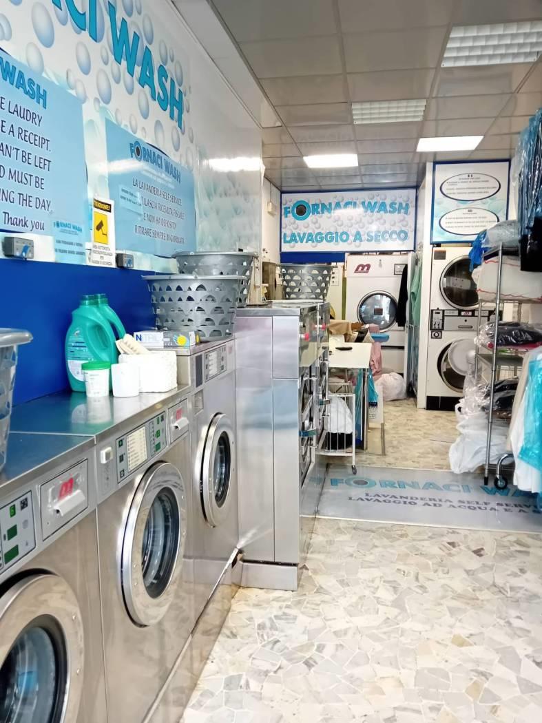 - 2 asciugatrici da 12 kg, 1 asciugatrice da 25 kg, 2 banchi da stiro, 1 gettoniera che comanda tutte le macchine;