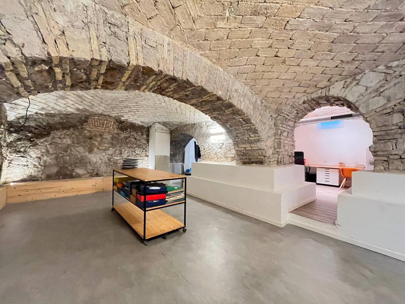 Il piano seminterrato, caratterizzato dal suggestivo soffitto a mattoncini e dalla bocca di leone che porta luce e aria, crea un’atmosfera accogliente e autentica, perfetta per studi professionali, atelier, laboratori creativi o spazi di archiviazione.