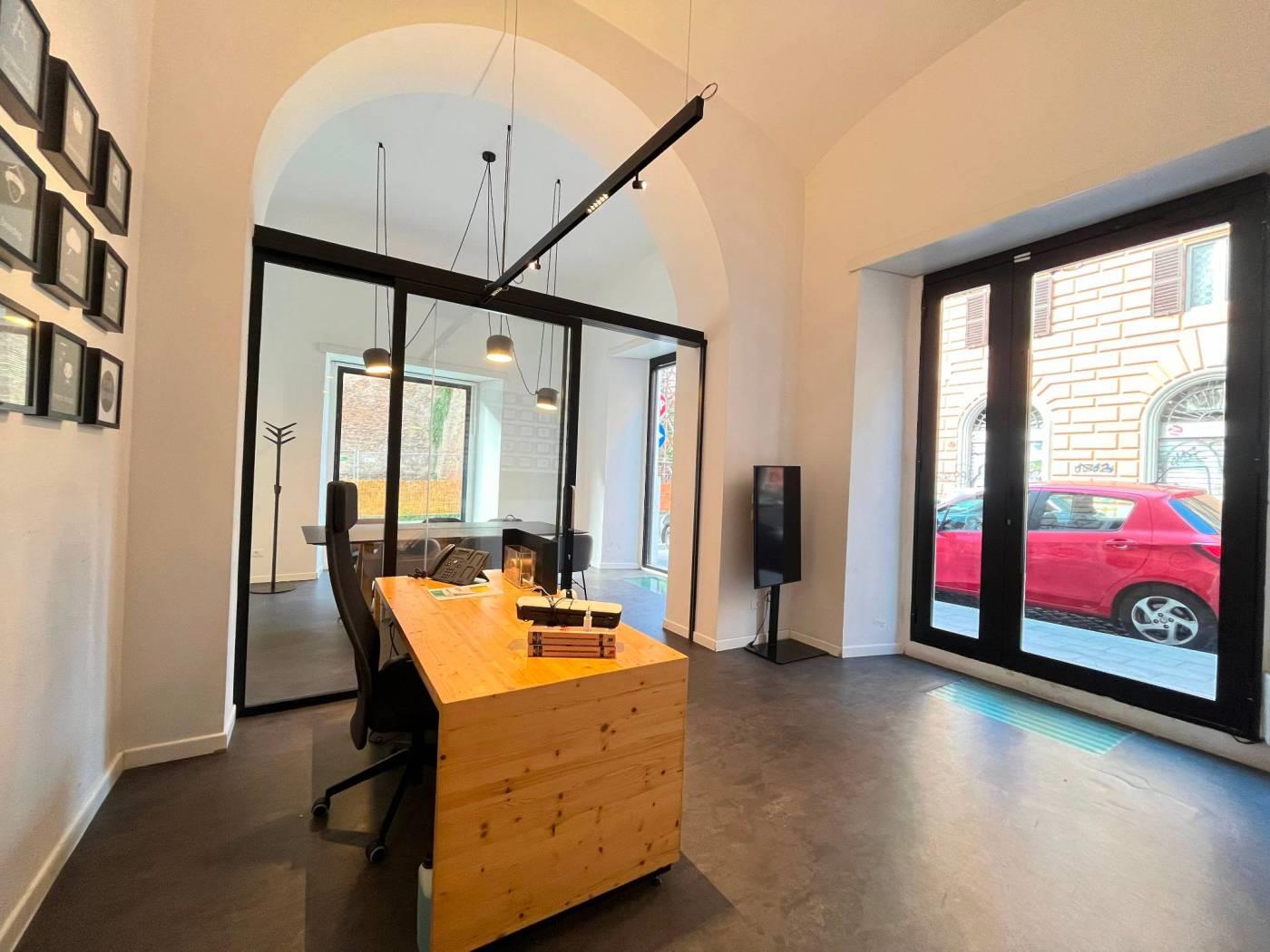 Un luogo di lavoro unico, dove funzionalità, stile e atmosfera si incontrano per dare forma a un ambiente professionale di rara bellezza nel quartiere più caratteristico di Roma.
