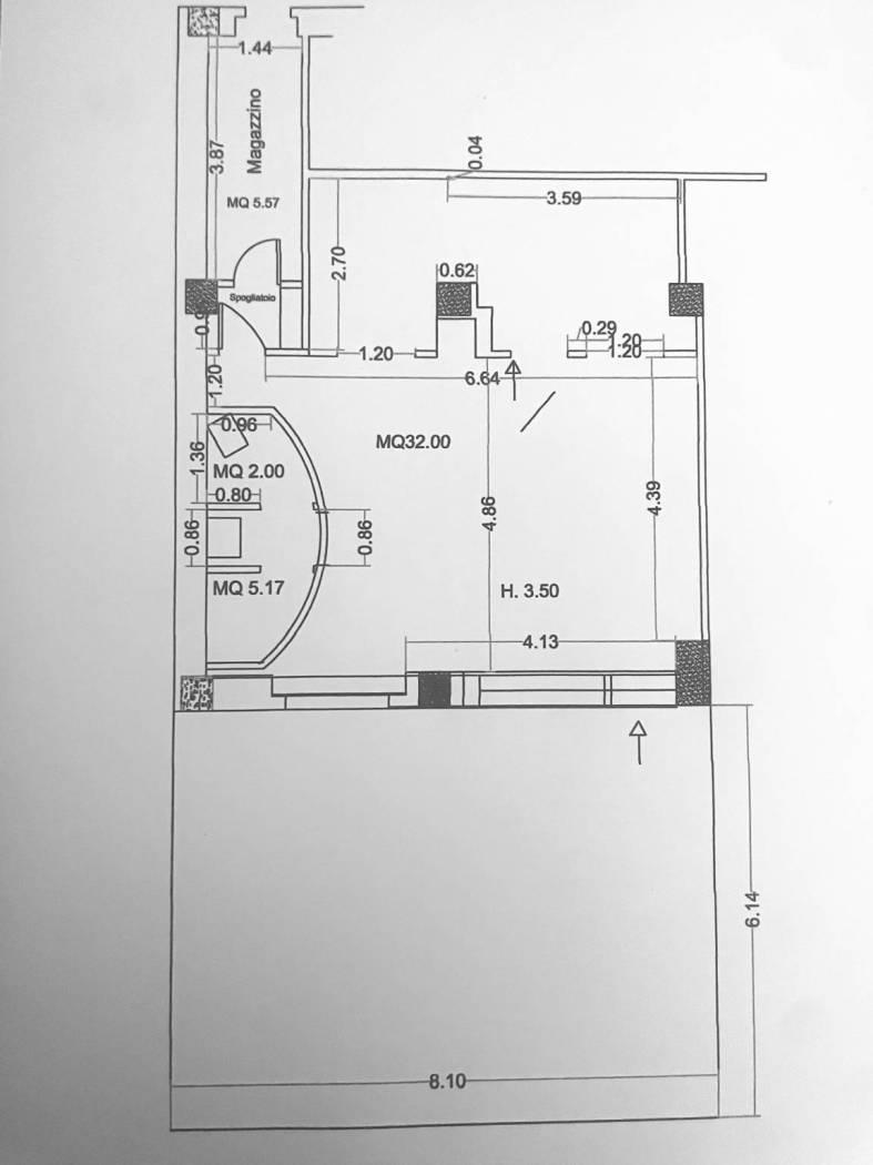 Completano il locale i doppi servizio per il pubblico , il magazzino e lo spogliatoio per i dipendenti.