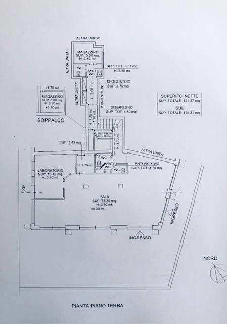 La location curata in ogni dettaglio, gode di 6 vetrine su strada, si tratta di mq 140 c. a. disposti su due livelli, mq 120 c.a al piano terra e mq 20 c.a. al piano rialzato al quale giungiamo mediante una comoda scala dove abbiamo il magazzino, lo spogliatoio ed il bagno per i dipendenti.