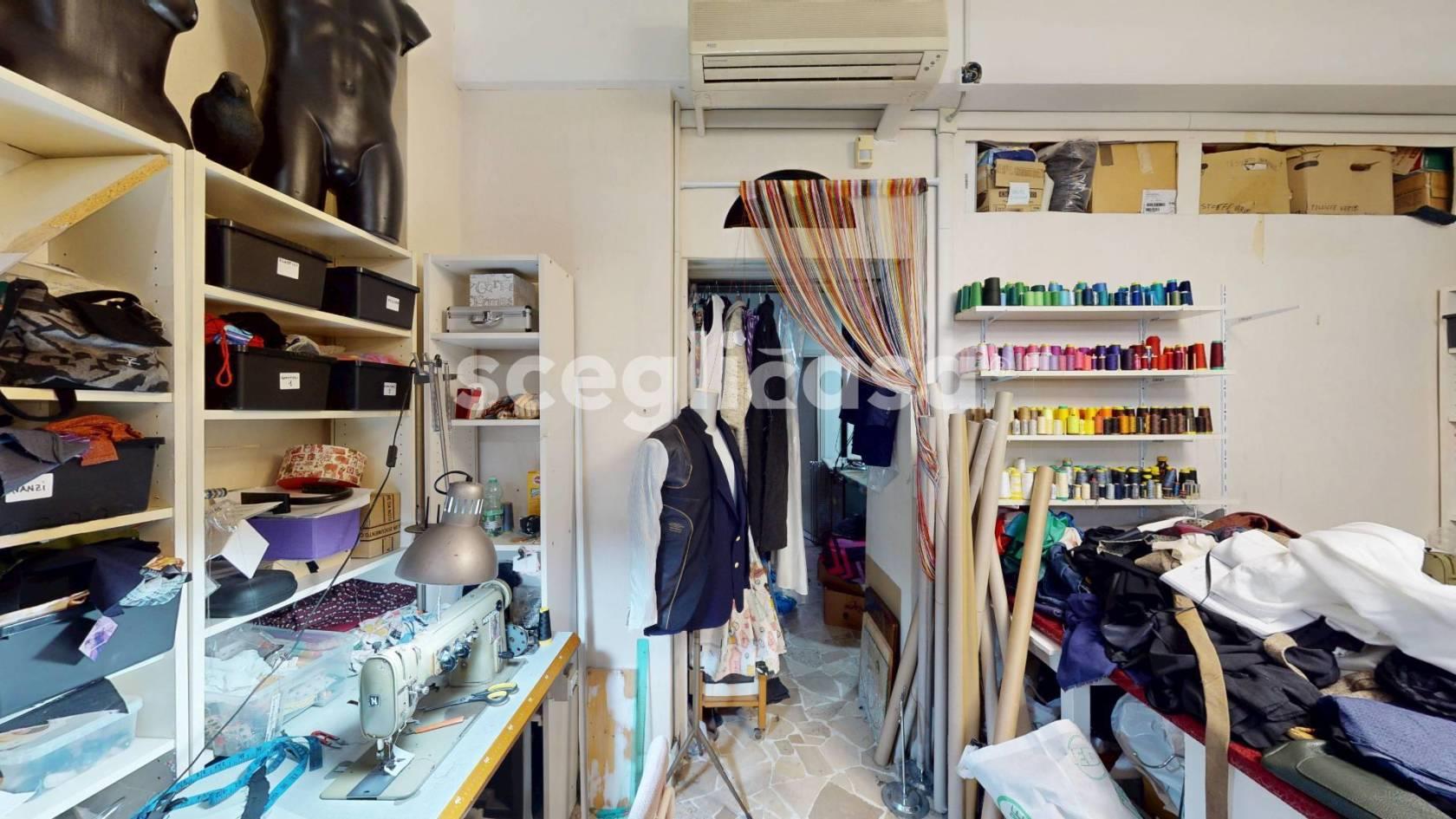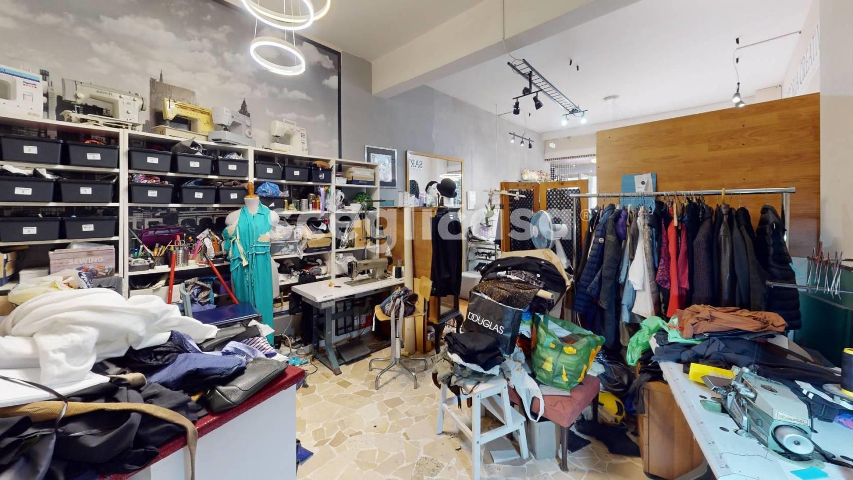 Lo stato di conservazione è ottimo e gli spazi interni sono suddivisi in 2 zone principali, di accoglienza e laboratorio, oltre a retrobottega finestrato e bagno con finestra, perfetto per essere adibito ad attività di atelier e sartoria creativa.