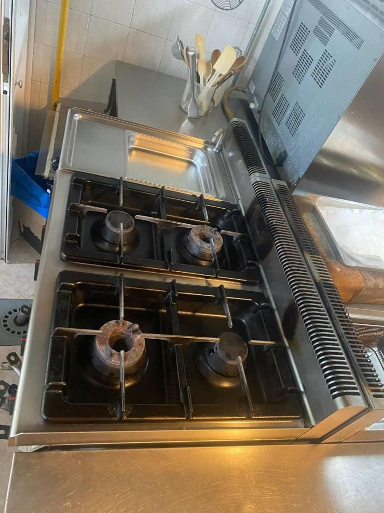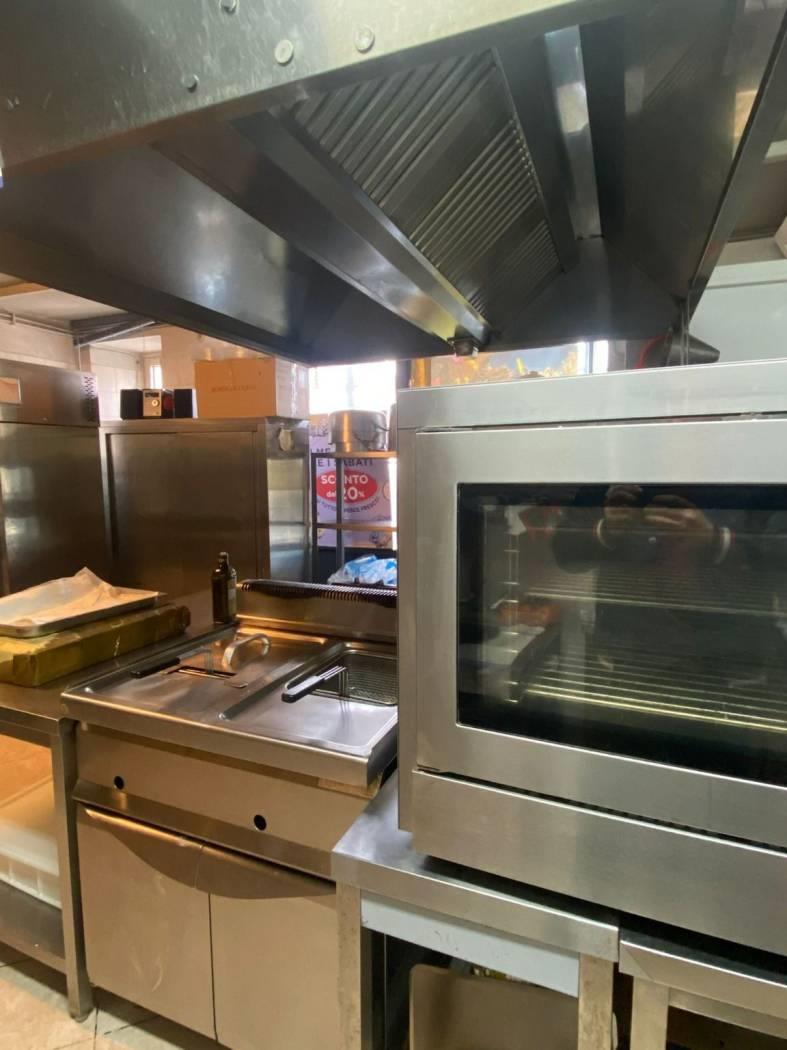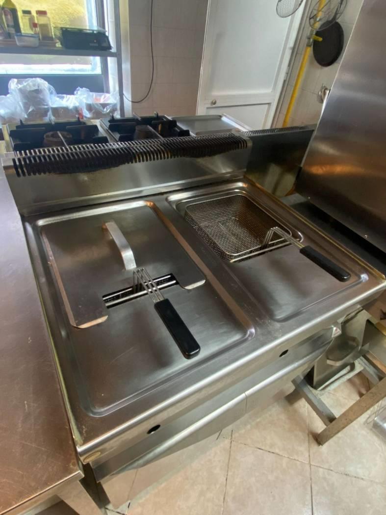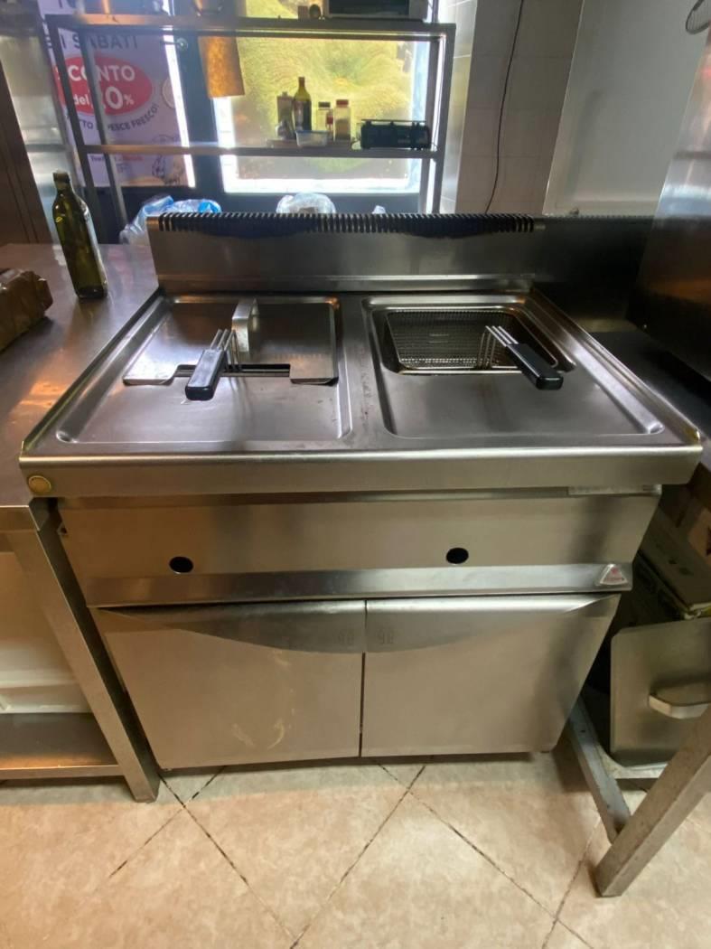 * cucina completa con friggitrici, bolli pasta e piano cottura a gas