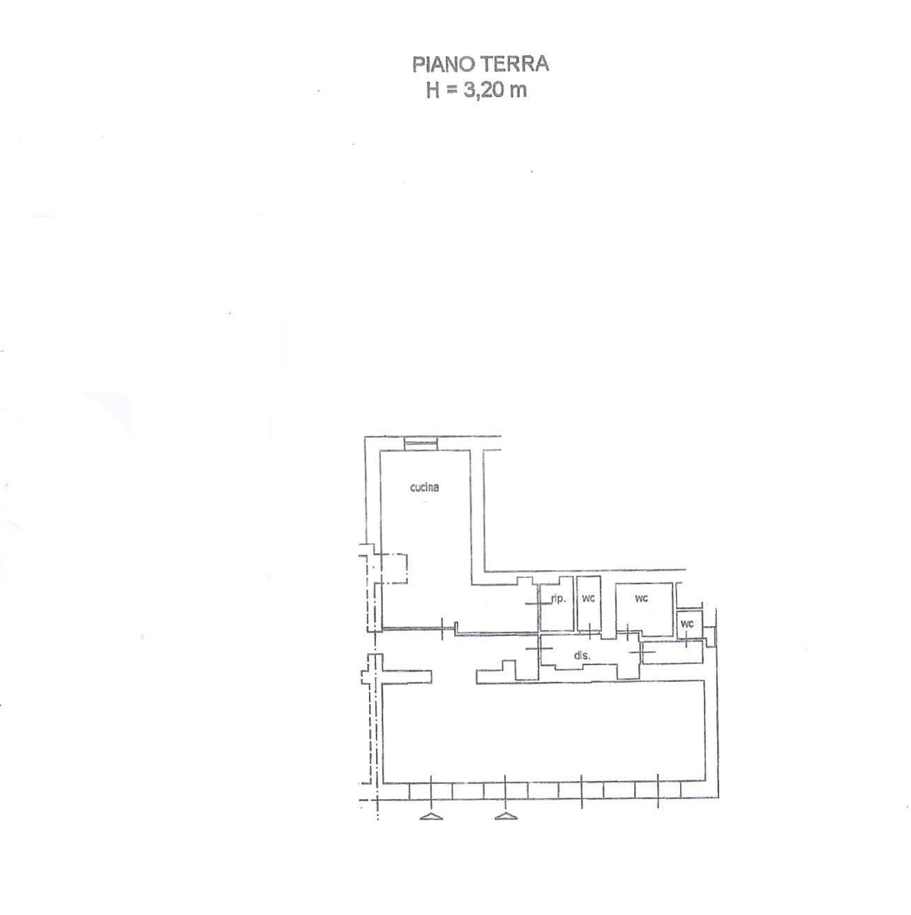 Composizione: Ampia sala accoglienza (50 mq), zona cucina a vista, servizi e ripostigli.