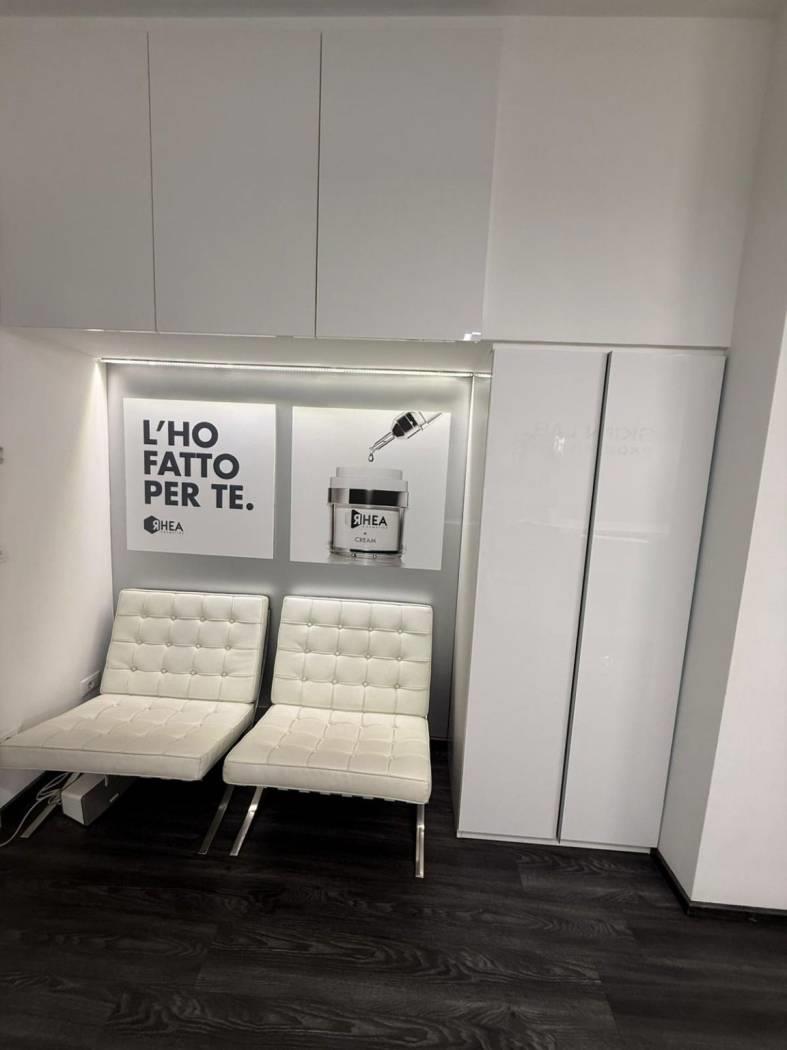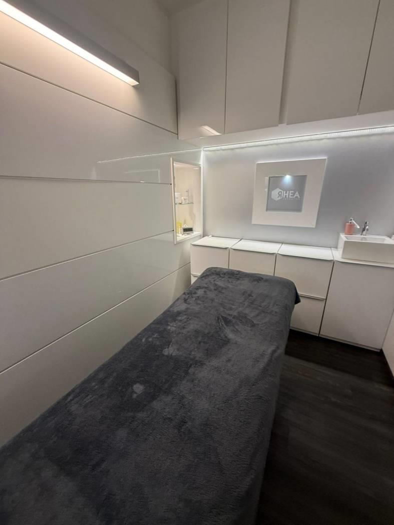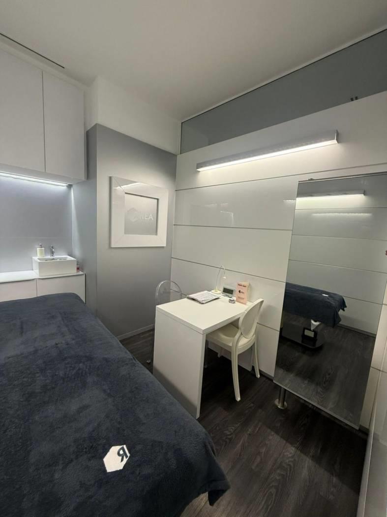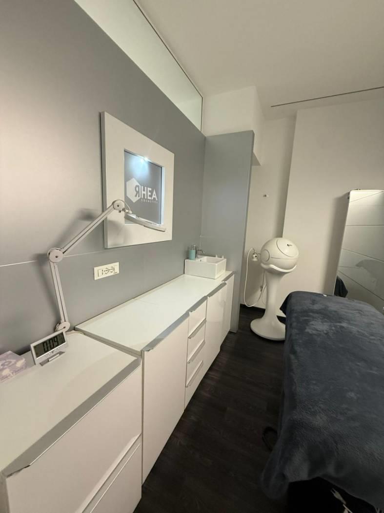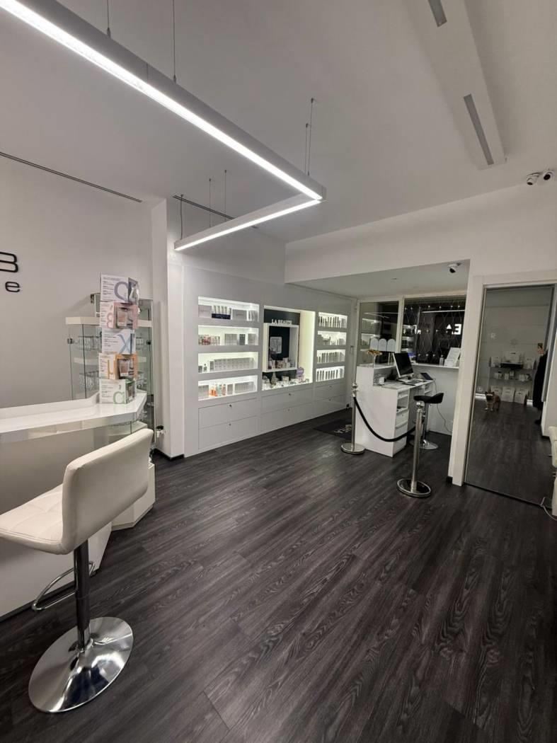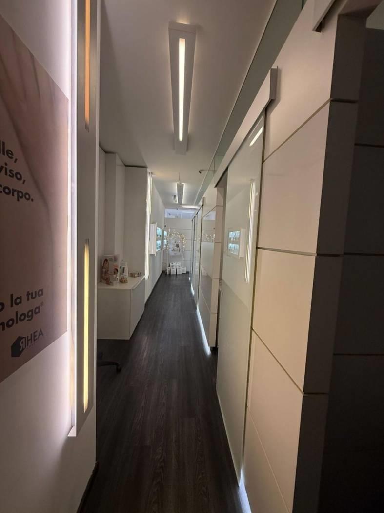 All’ingresso troviamo una zona segreteria e una parte adibita allo skin lab, un ufficio ed un salottino di accoglienza. Le 4 cabine tutte con doccia interna sono dotate di lettini automatici, stigliature e rivestimenti su misura, abbiamo poi doppi servizi. Troviamo poi una zona dedicata al personale con cucina completamente attrezzata lavatrice e asciugatrice.