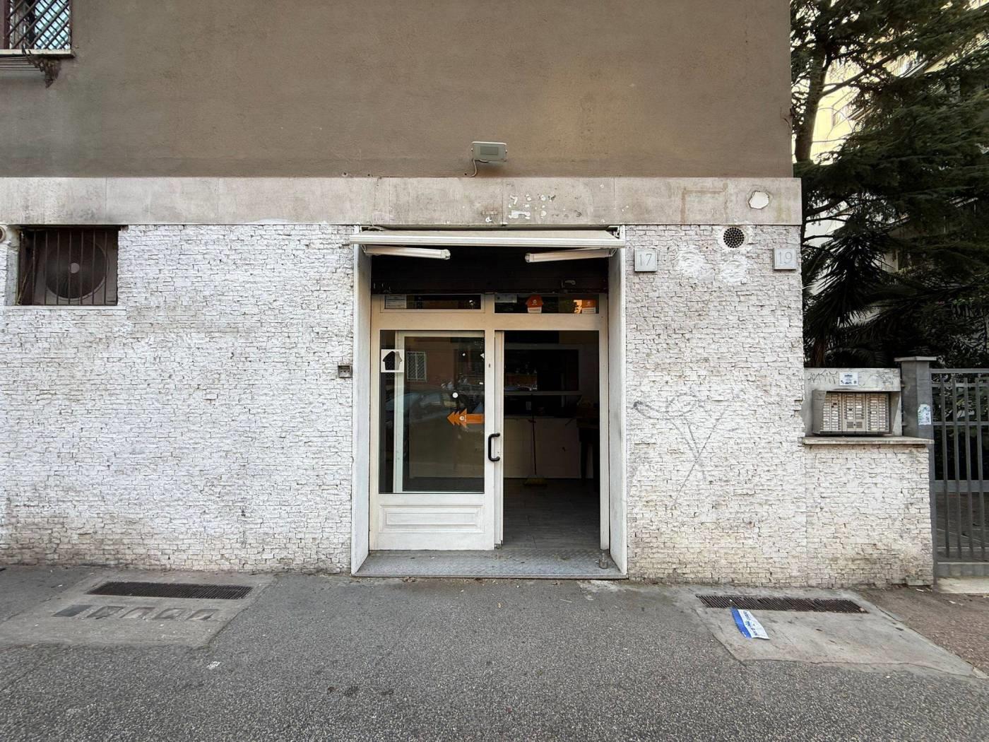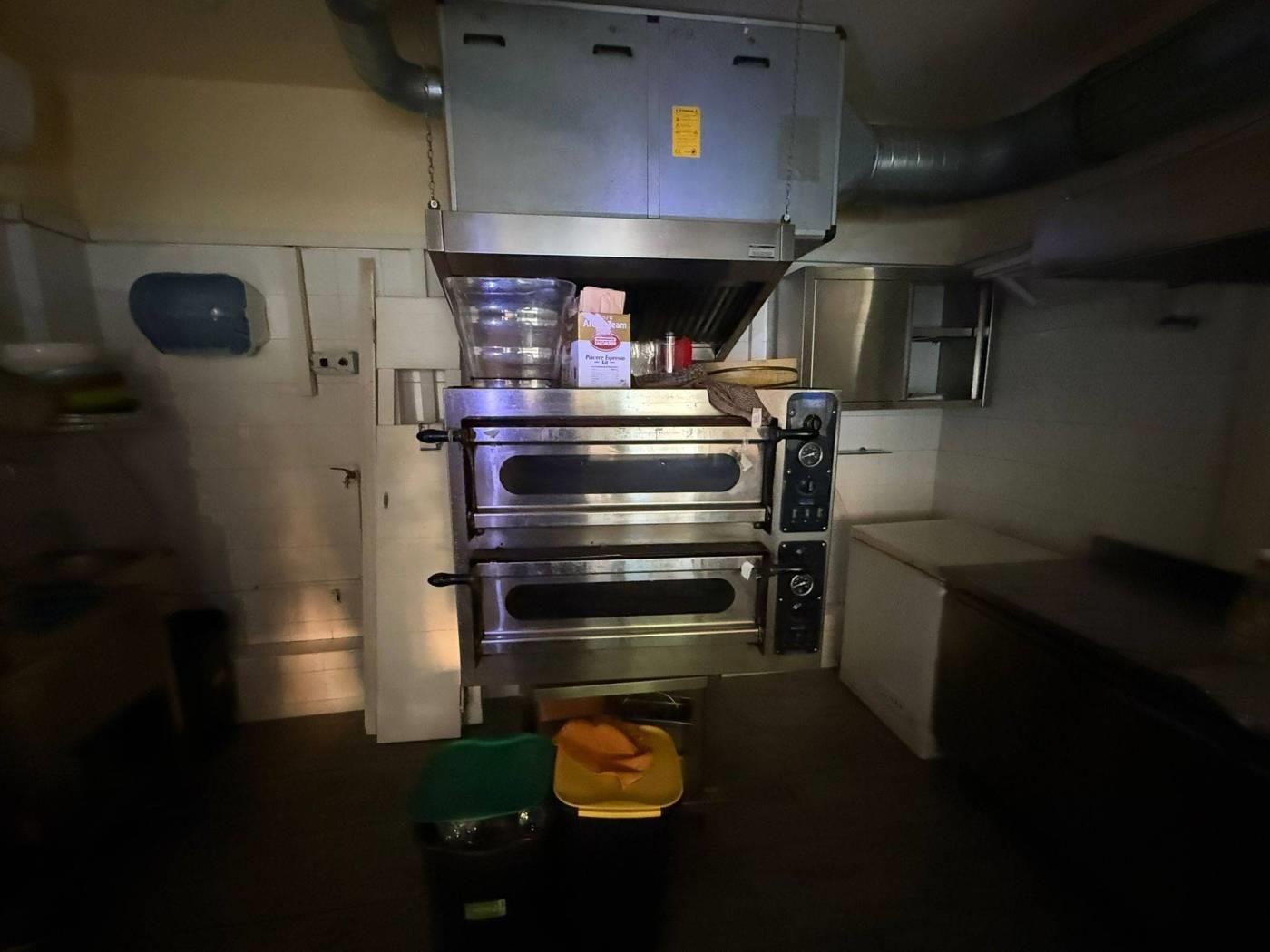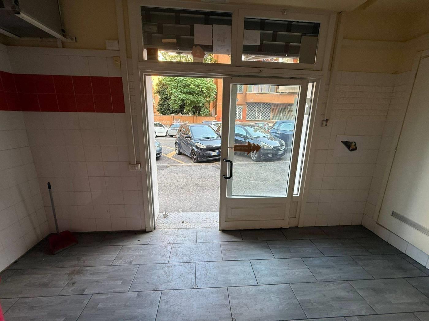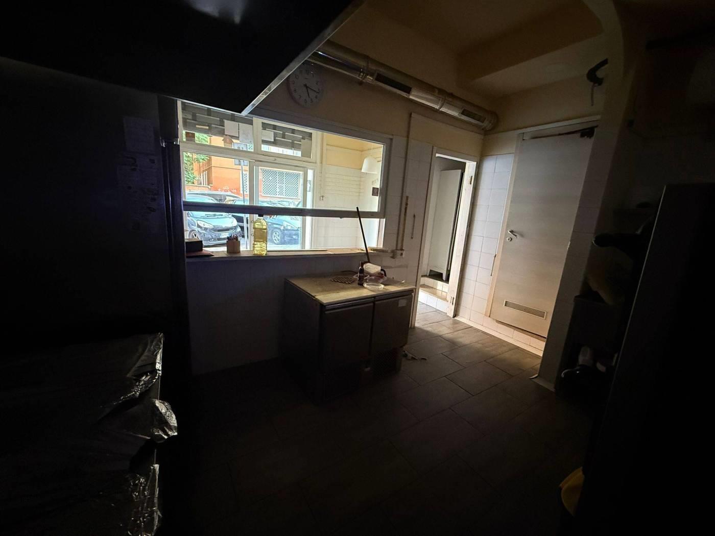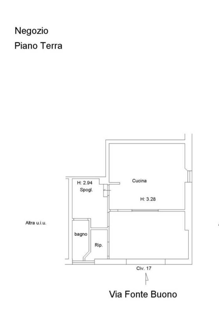 ampia vetrina su strada, bancone, bagno, un piccolo magazzino, retronegozio completo di attrezzature ( forno per pizza, frigorifero, lavandino e banco da lavoro).