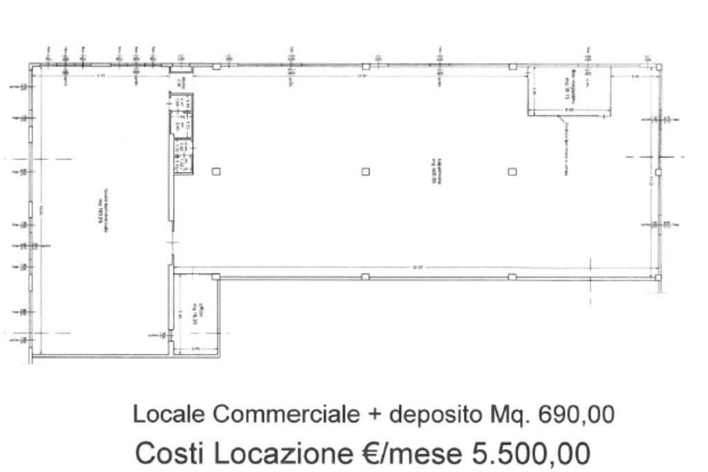 La configurazione attuale prevede una zona commerciale di circa 190 mq con vetrine su strada ad alto traffico e un magazzino retrostante di circa 500 mq, con altezza utile di 4,40 m. Tuttavia, la distribuzione interna è completamente modificabile, permettendo di ridurre o eliminare la zona magazzino per ampliare l’area dedicata alla vendita o al pubblico.