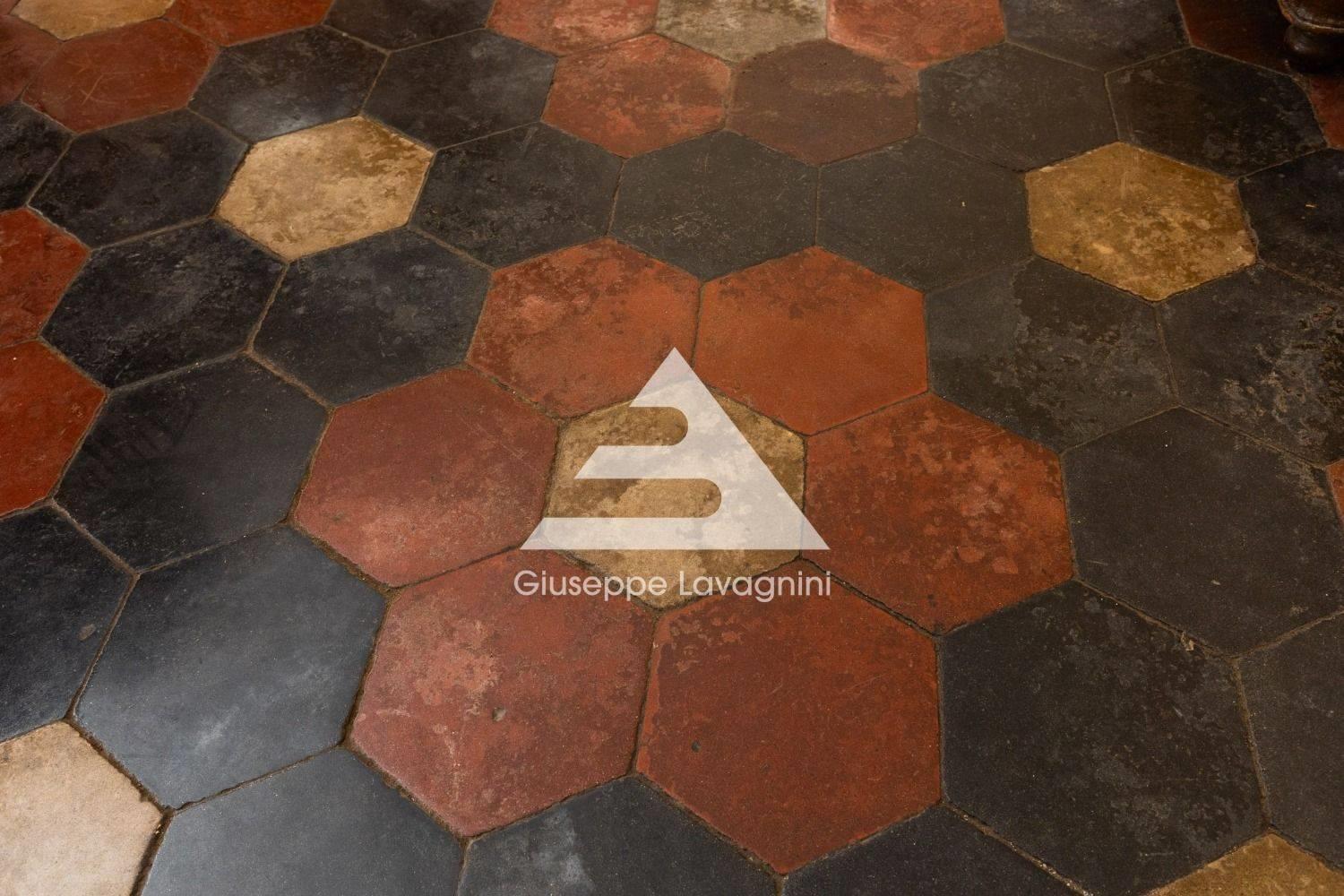 Pavimentazioni originali in cementine esagonali, perfette per un recupero in stile vintage o industrial-chic.