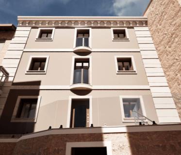 Gli immobili sono serviti da un'ampia scala patronale con ringhiera in ferro battuto e sono distribuiti nel seguente modo: al primo ed al secondo piano si trovano un bilocale di 55 mq ed un trilocale di 87 mq, mentre al terzo piano un attico di 90 mq con piccolo lastrico solare abitabile.