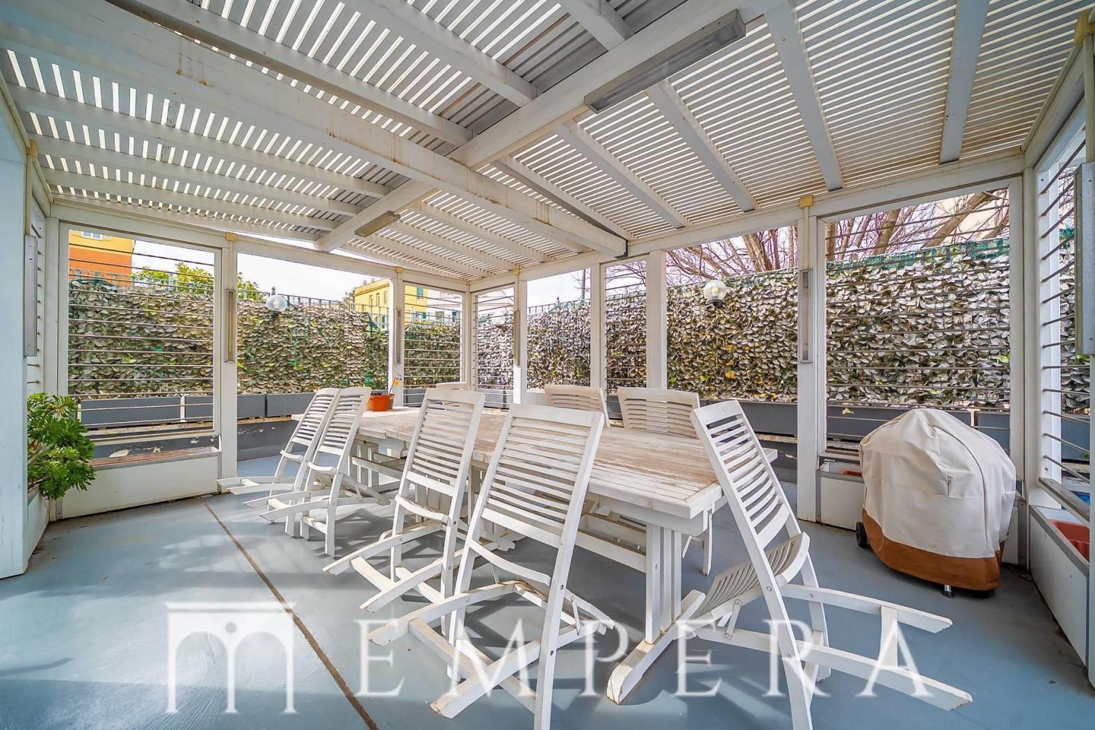 La proprietà, di circa 500 mq interni oltre 500 mq di spazi esterni tra terrazzo e giardino pavimentato con elegante gazebo, si sviluppa su quattro livelli serviti da ascensore, oltre alla suggestiva torretta panoramica.