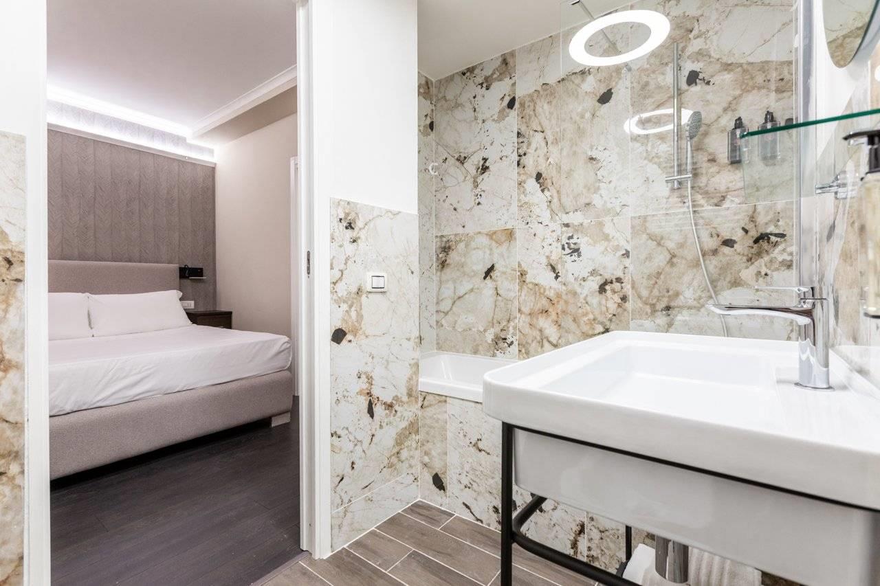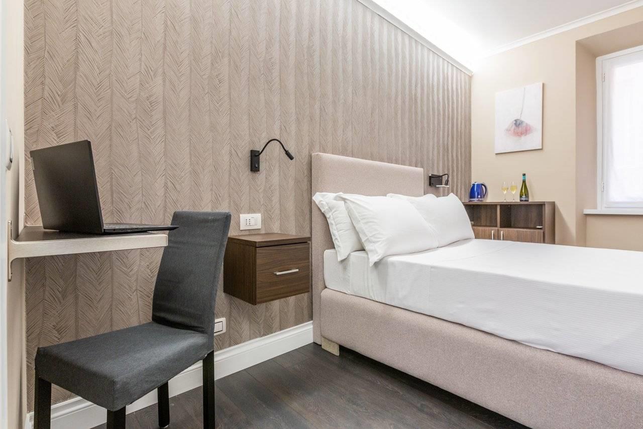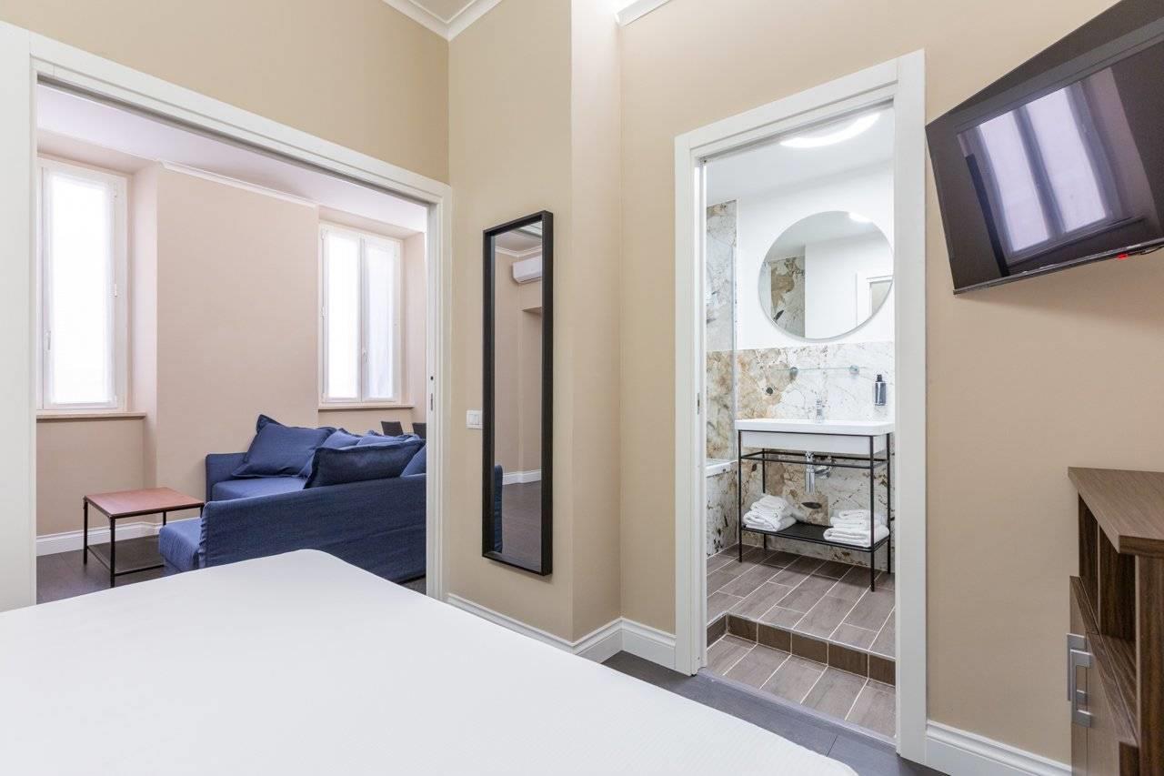 Roma, Centro Storico, Tridente, tra Piazza del Popolo e Piazza Venezia, a pochi passi dai principali monumenti capitolini, attività commerciali e servizi pubblici, proponiamo la cessione di un delizioso cielo-terra di quattro piani, adibito e attivo come struttura ricettiva e con licenza di somministrazione. Il palazzetto è di recente ristrutturazione e finemente decorato con arredi in stile moderno ed elegante, dotato di ascensore e comfort elettrodomestici di ultima generazione. L'immobile ha una superficie di circa mq 400 con annesso negozio con canna fumaria al piano terra. Key money: trattativa riservata. L'attività di guest house consiste in: reception al piano terra; suite con camera da letto, bagno e salone con angolo cottura, nonchè due camere doppie e relativi bagni, rispettivamente ai piani primo, secondo e terzo (nove alloggi di cui tre suite); ufficio, bagno e vano tecnico al piano quarto. Le camere sono servite da climatizzazione, WiFi, TV a schermo piatto, cassaforte, frigobar ed accessori da bagno.