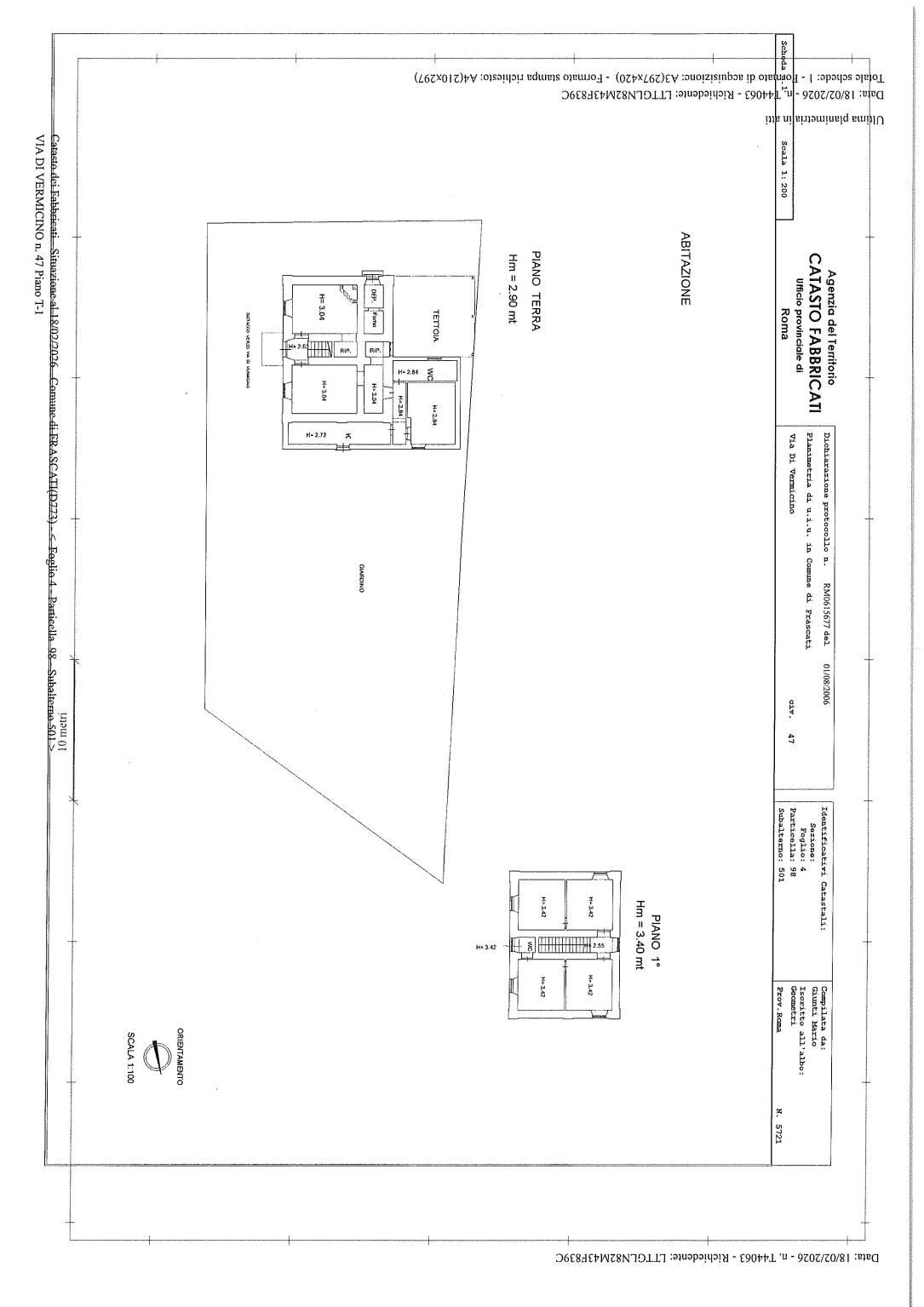 Piano primo : quattro camere ed un bagno, mq 80
