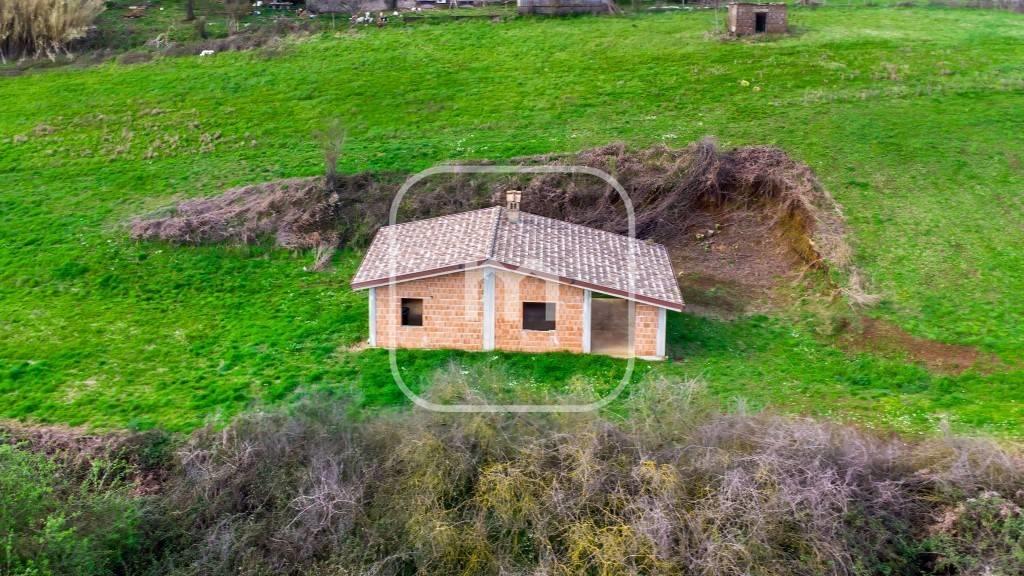 con una superficie di 78 mq, arricchito da un suggestivo portico e circondato da un ampio terreno di 9000 mq.