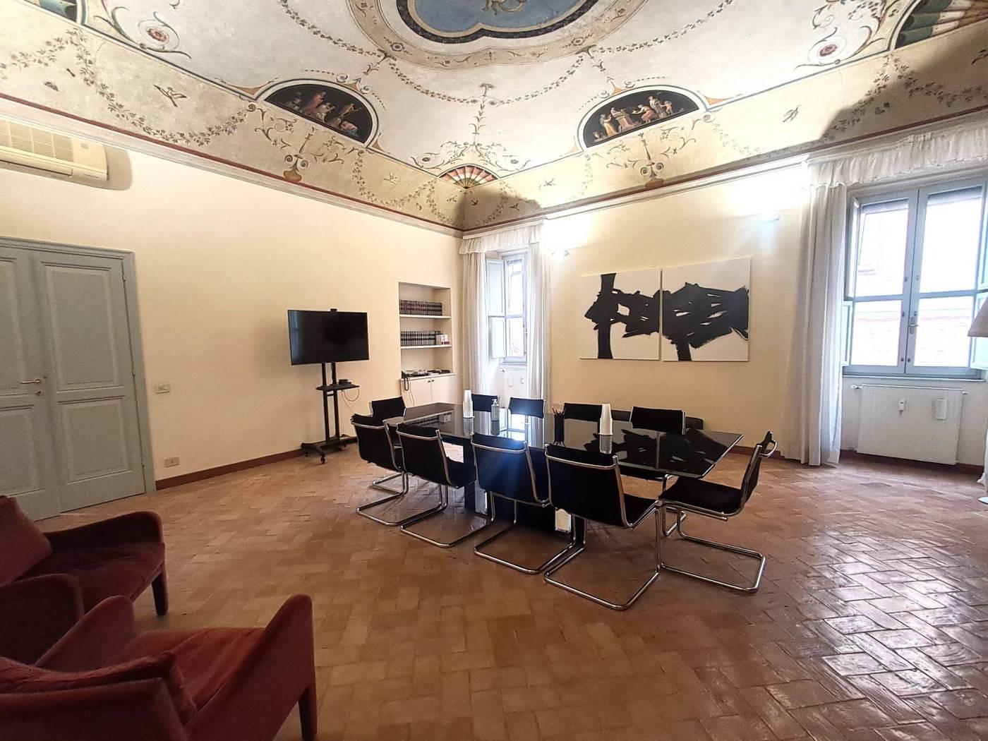 L'ufficio è adatto per grandi studi di rappresentanza per la presenza di ampi spazi e soffitti decorati.