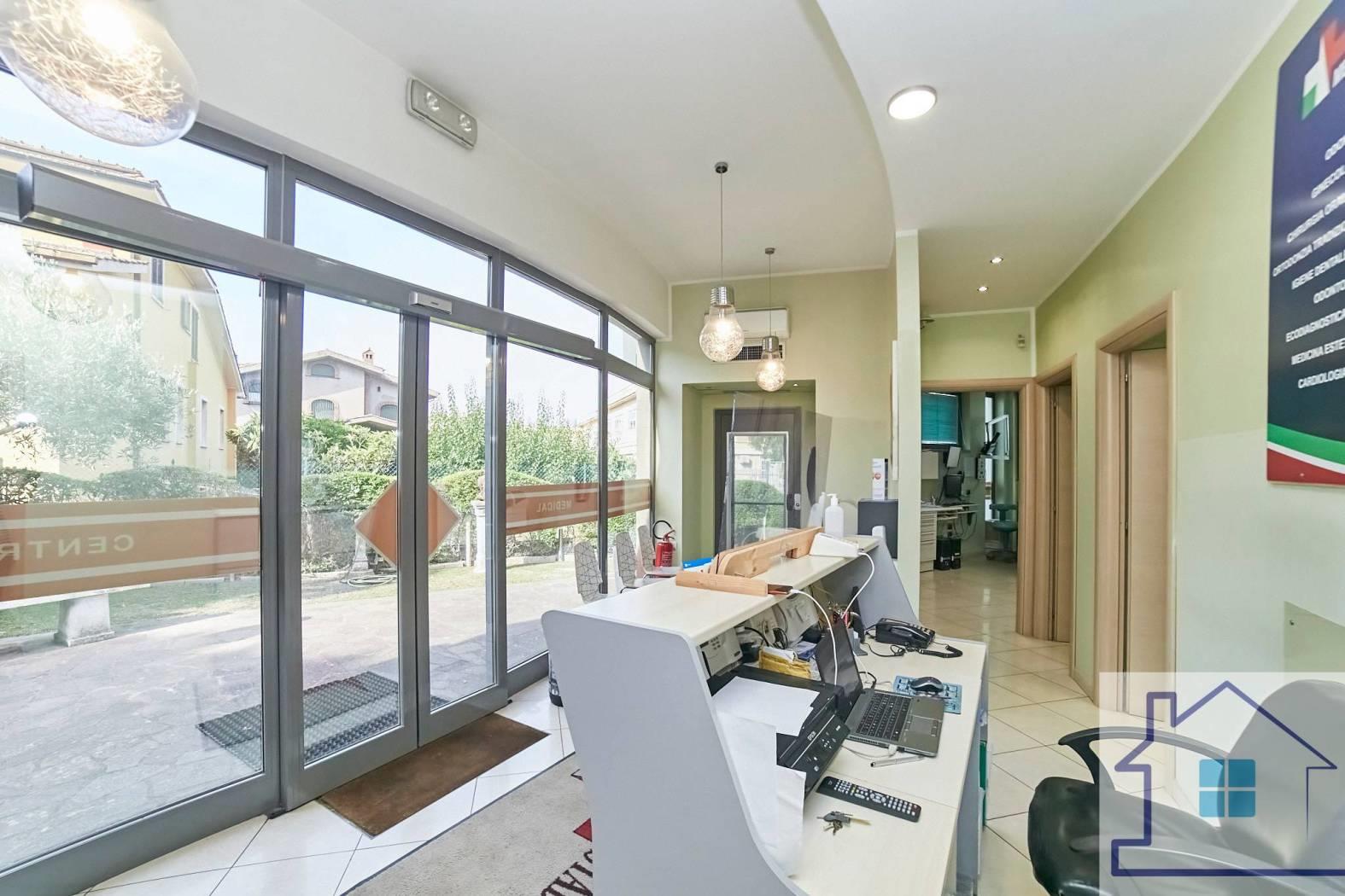 Rif: 1064 - IMMOBILIARE SIMONETTI - In zona altamente popolata, servita di ogni genere di servizi di prima necessità, ricca di attività e ben collegata con i mezzi, a ridosso delle scuole elementari e medie e nelle immediate vicinanze del palazzetto dello sport e del parco di Ciampino, sulla via principale di Ciampino, più precisamente in via Mura Dei Francesi, la Immobiliare Simonetti propone in locazione un edificio di due piani con ascensore e ingresso indipendente adibito a studio medico composto da cinque uffici. Il piano terra di 97 mq é composto da una sala d'attesa con reception, tre uffici e due bagni, uno per il personale e l'altro per i clienti. Il piano seminterrato di 72 mq é composto da due uffici di cui uno con pavimento in parquet ideale per uso fisioterapico, e un magazzino/laboratorio. In una delle stanze é presente un macchinario per eseguire ortopanoramiche nel caso si fosse interessati ad avviare uno studio dentistico. L'edificio é ben rifinito e non necessita alcun intervento di ristrutturazione ed é impreziosito da un ingresso con porta a scorrimento automatico e sistema di allarme, gli infissi soni in doppio vetro/alluminio e tutte le stanze hanno il riscaldamento autonomo. La locazione di 3.500€/al mese é intesa per l'intero stabile ed é esente da IVA. Sono richiesti 6 mesi di cauzione .