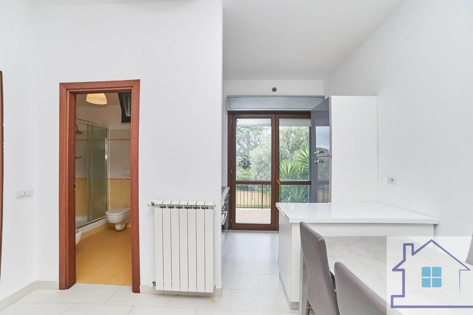 Rif. 1283- Immobiliare Simonetti - In strada ottimamente collegata nelle vicinanze della stazione ferroviaria di Tor Vergata ed all'interno di un prestigioso contesto residenziale posto in Via E. Fermi a Frascati la Immobiliare Simonetti propone in vendita diversi appartamenti di varie metrature, collocati in villa, ideali per chi cerca comfort, eleganza e funzionalità. Ogni soluzione è caratterizzata da ambienti luminosi e spazi ottimizzati ottenendo un connubio pratico e versatile. L'appartamento in questione e collocato al rialzato con duplice accesso: in modo classico attraverso l'androne condominiale o in modalità privata attraverso il giardino di pertinenza. Attualmente suddiviso in due comodi bilocali, la soluzione proposta offre la possibilità di trasformarsi in un unico spazioso trilocale impreziosito dalla presenza di un immenso terrazzo perimetrale collegato attraverso pochi gradini ad un giardino privato perffetto per trascorrere momenti di convivialità all'aperto. Completano la proprietà due bagni finestrati equipaggiati con doccia. Tutte le informazioni, foto e planimetrie contenute nel presente annuncio pubblicitario non costituiscono elemento contrattuale: potrebbero non rispecchiare fedelmente lo stato di fatto dell'immobile e andranno verificate prima di formulare la proposta di acquisto. L'agenzia immobiliare non risponde di eventuali discordanze. Le immagini o foto in pubblicità sono inserite a scopo illustrativo non costituiscono elemento contrattuale. Rif: 1283- Immobiliare Simonetti.I
