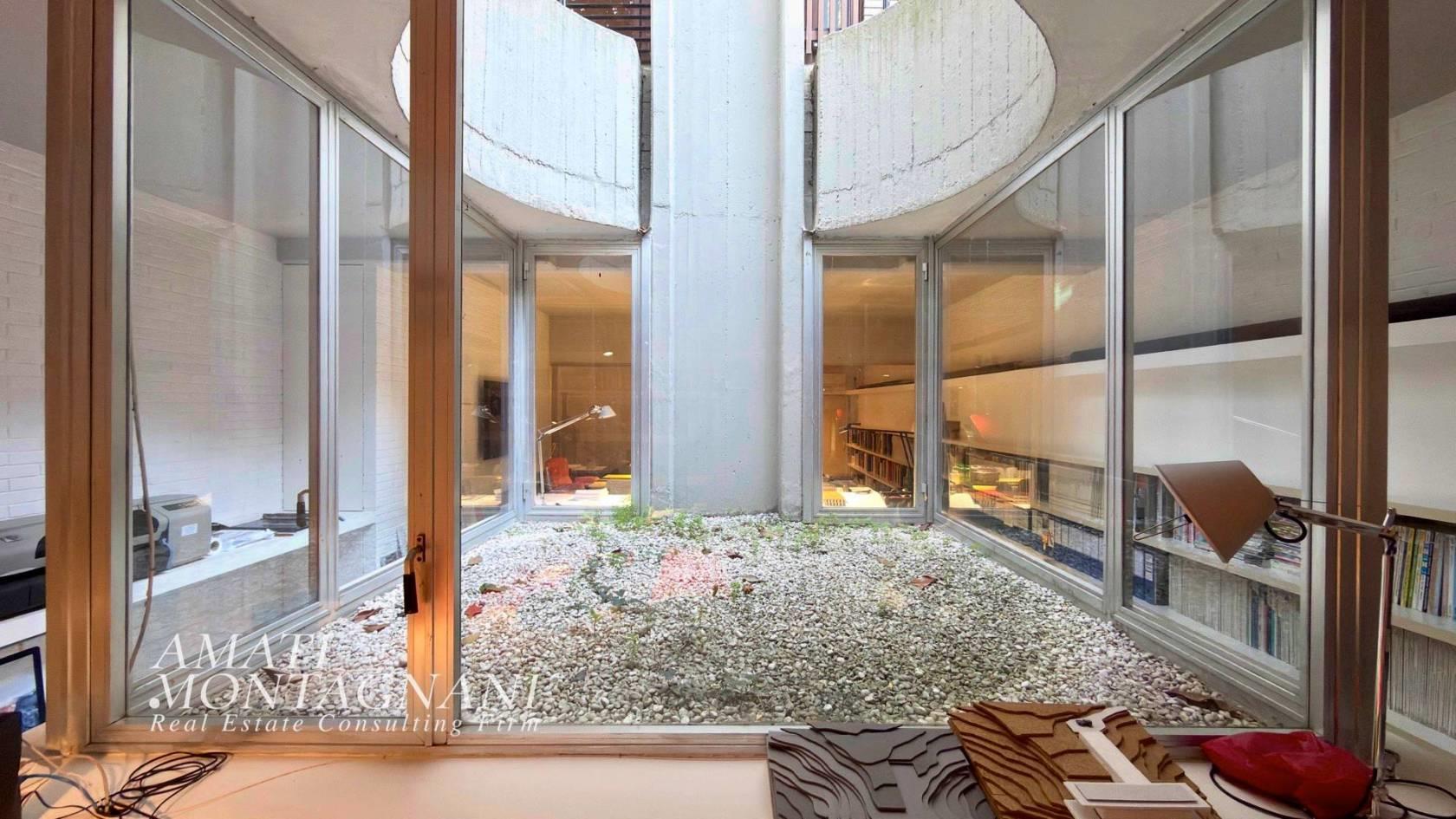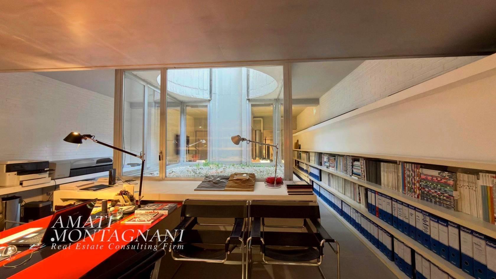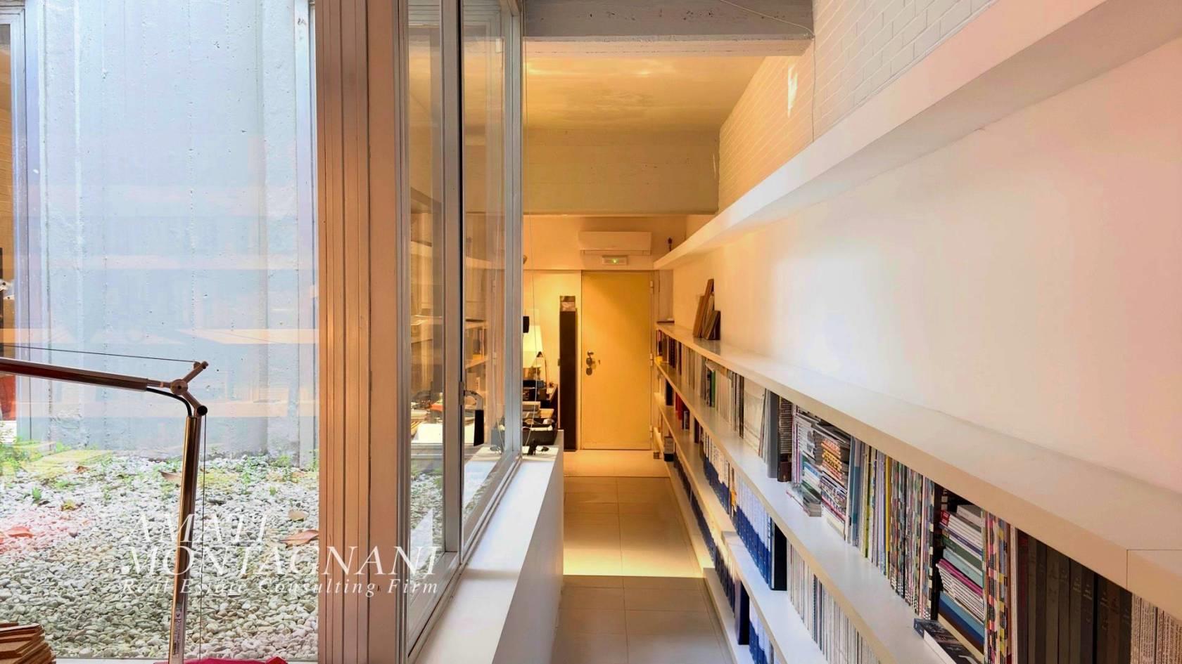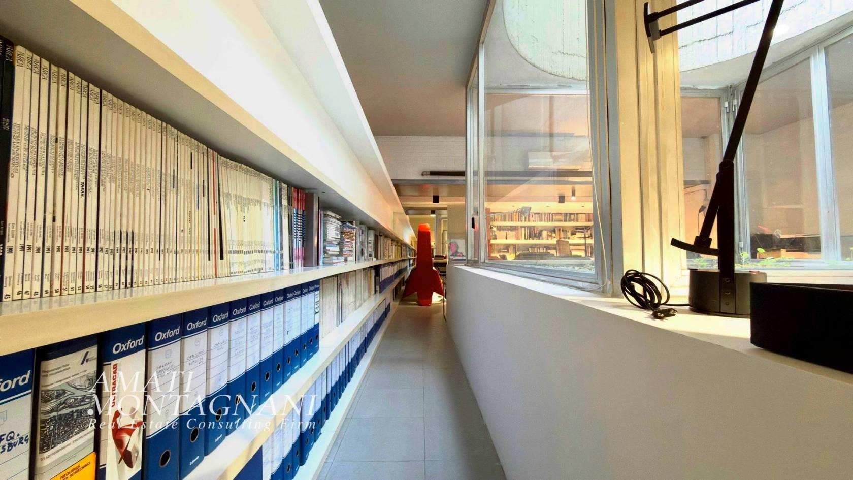 In Via Colli della Farnesina AMATIMONTAGNANI propone in vendita un delizioso loft, attualmente accatastato A/10 trasformabile in A/2, di ca. 94 Mq. posto al piano S1 di un elegante stabile brutalista degli anni 70.
